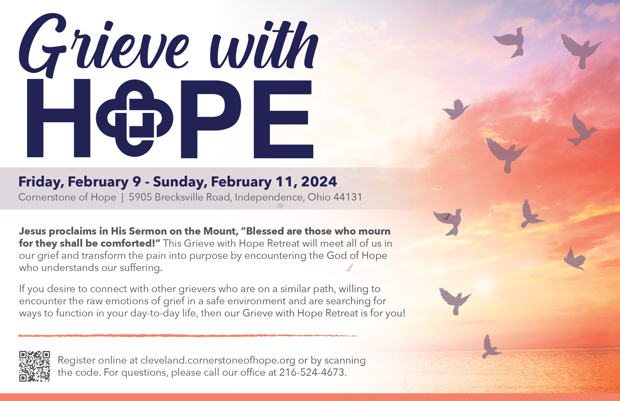 Cornerstone of Hope - Grieve with Hope Retreat Cornerstone of Hope provides comprehensive grief counseling and support at each of its three Ohio locations: Cleveland, Columbus, and Lima. If you or someone you know is struggling with the loss of a loved one and is searching for ways to carry on, please join Cornerstone of Hope at its Annual Grieve with Hope Retreat, February 9th through 11th.