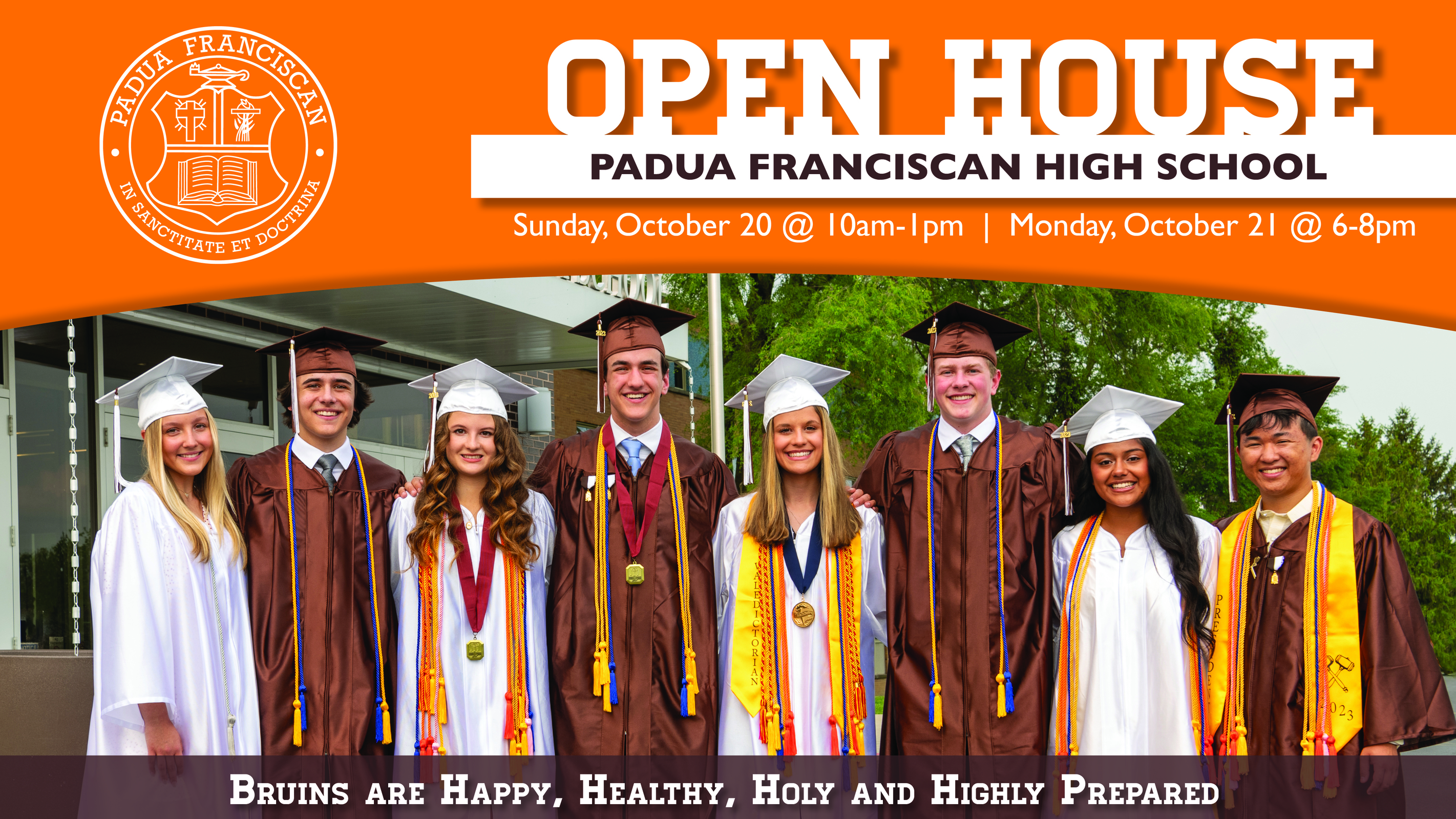 Middle school students and families are invited to join us for our Fall Open House where teachers and students will offer personalized tours that showcase Padua’s premier programs including MedTrack, MyTrack, and Performing Arts. Coaches will be available to speak with student athletes, and families can enjoy some delicious samples from our Cafeteria. Visit paduafranciscan.com for registration information.
