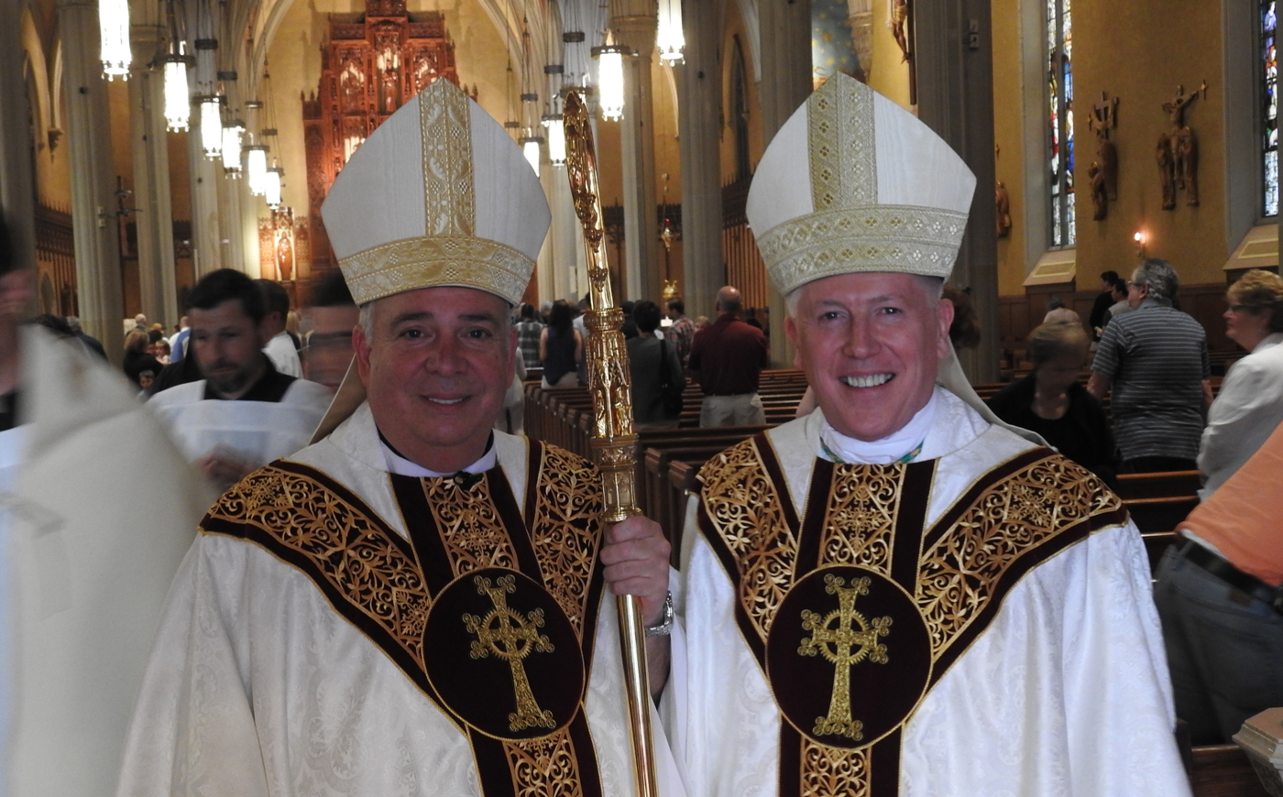 Bishop Perez told the congregation that he returned recently from a retreat trip to Rome. “There are bishops and priests everywhere in Rome. Bishops and priests come and go. Bishop (Daniel) Thomas came and went,” he quipped, pointing to Toledo Bishop Daniel Thomas, who concelebrated the Mass. He was referring to Bishop Thomas’ nine months as apostolic administrator of the diocese before Bishop Perez’s appointment and installation. Bishop Thomas was in town on June 22 to attend an event.