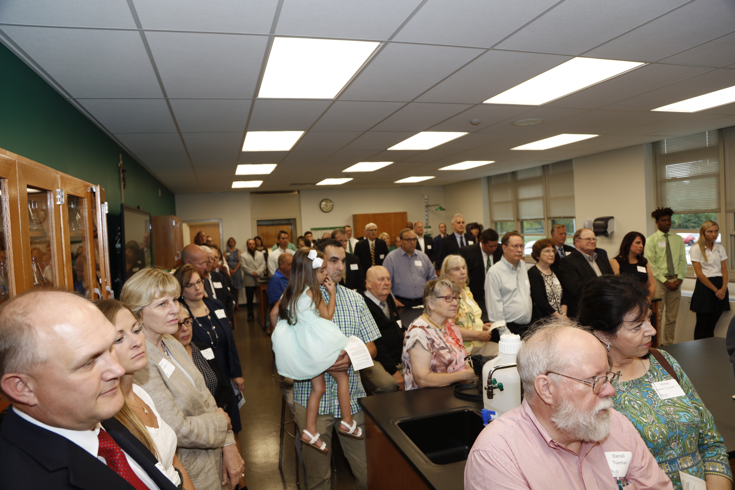 A large crowd of benefactors, alumni, board members, community partners, staff and students came together on Sept. 23 for the unveiling and blessing of the new chemistry lab at Holy Name High School.