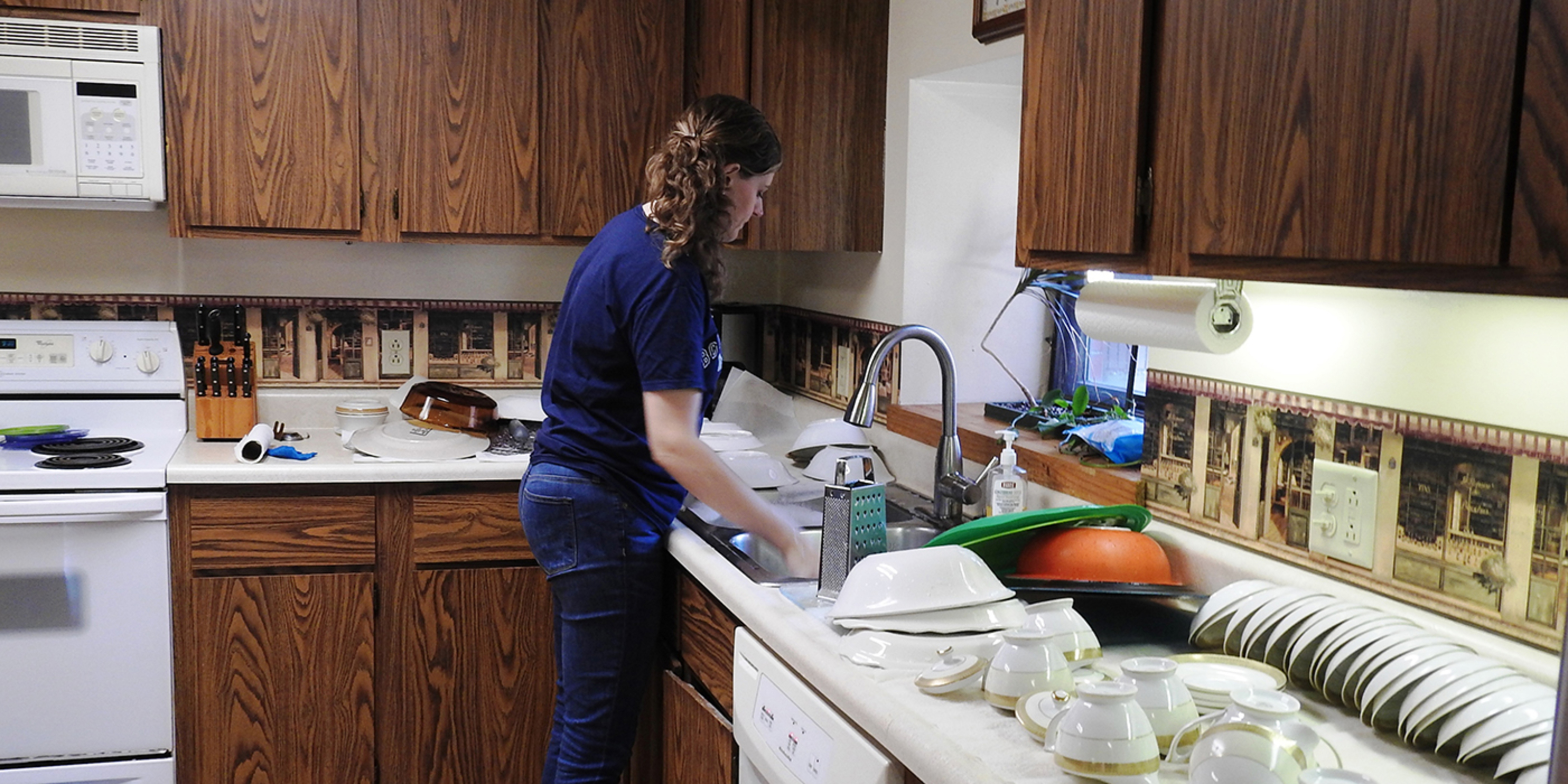 Another crew worked downstairs in the large kitchen washing dozens of dishes and glassware. They also sorted unneeded items that will be donated.