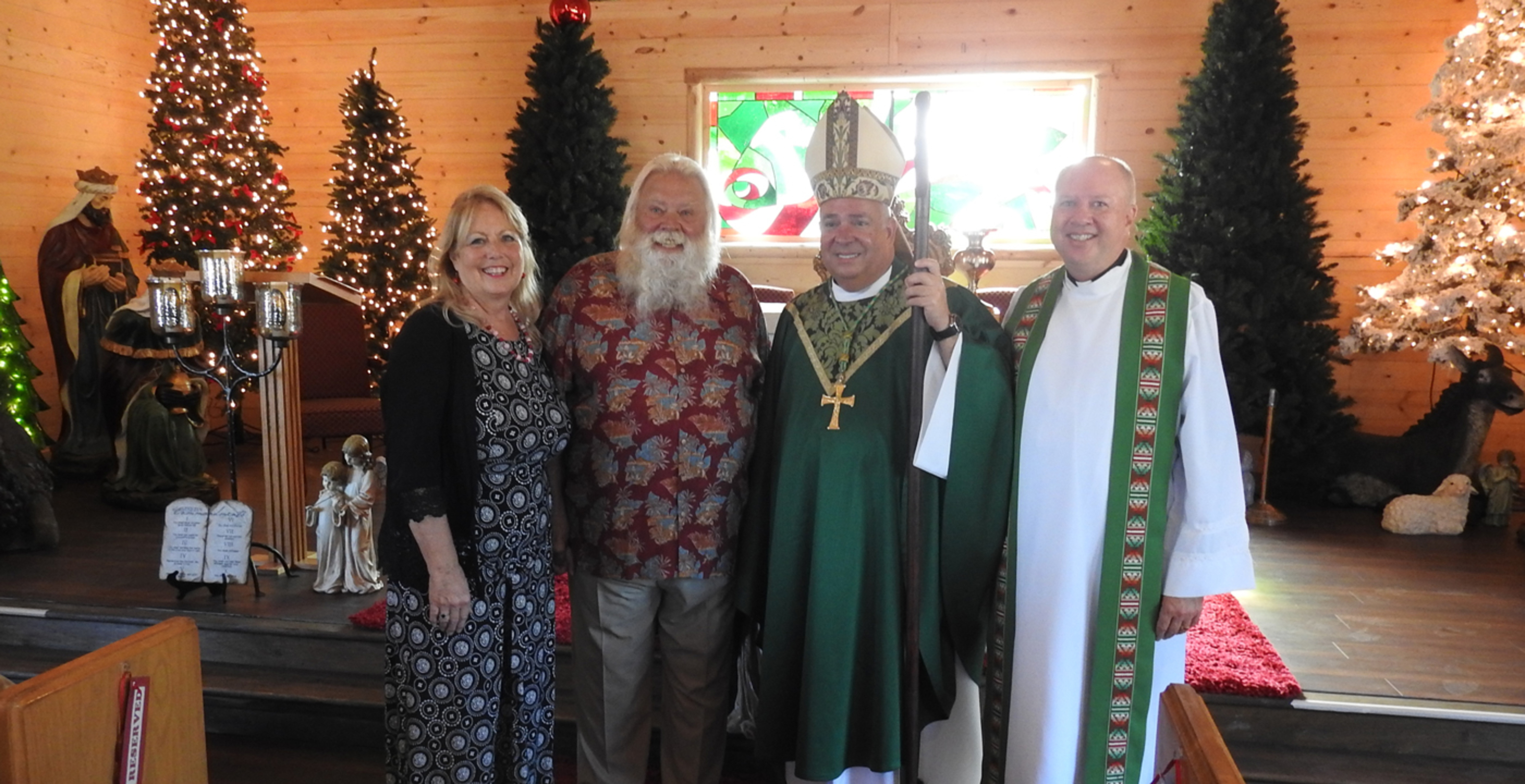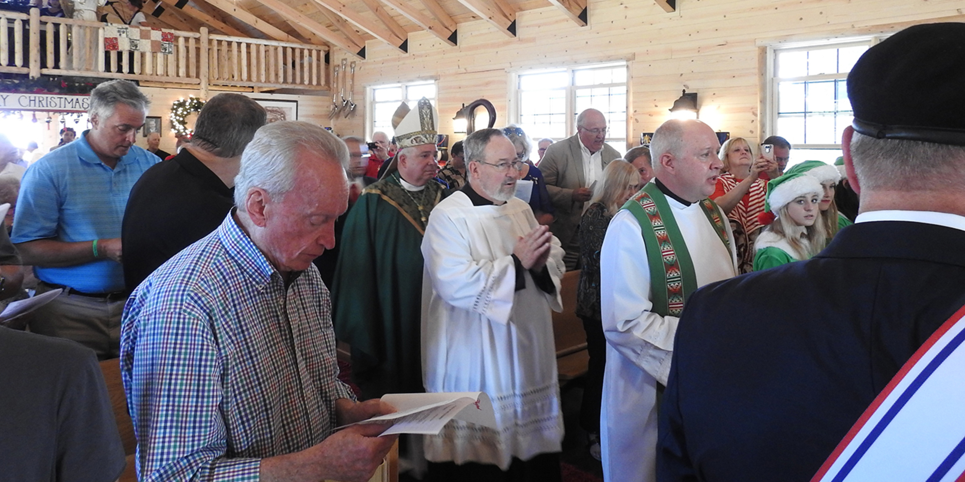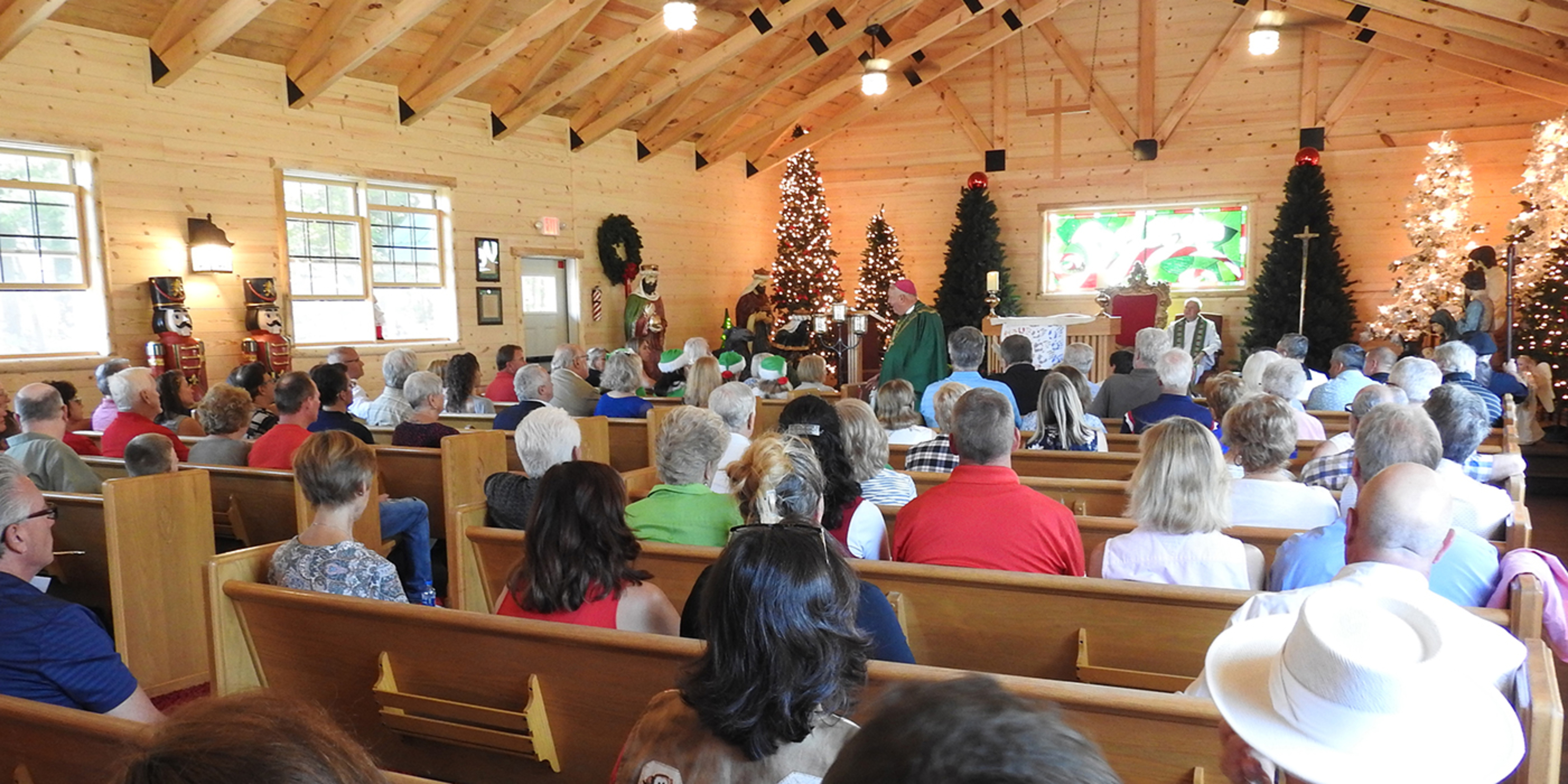 Bishop Nelson Perez and Father Dan Schlegel, secretary and vicar for clergy and religious for the Catholic Diocese of Cleveland, paid a visit to Santa’s Hide-A-Way on Sept. 20 to celebrate Mass and dedicate the new chapel. It was the bishop’s first visit and he said he could feel the Christmas spirit.
