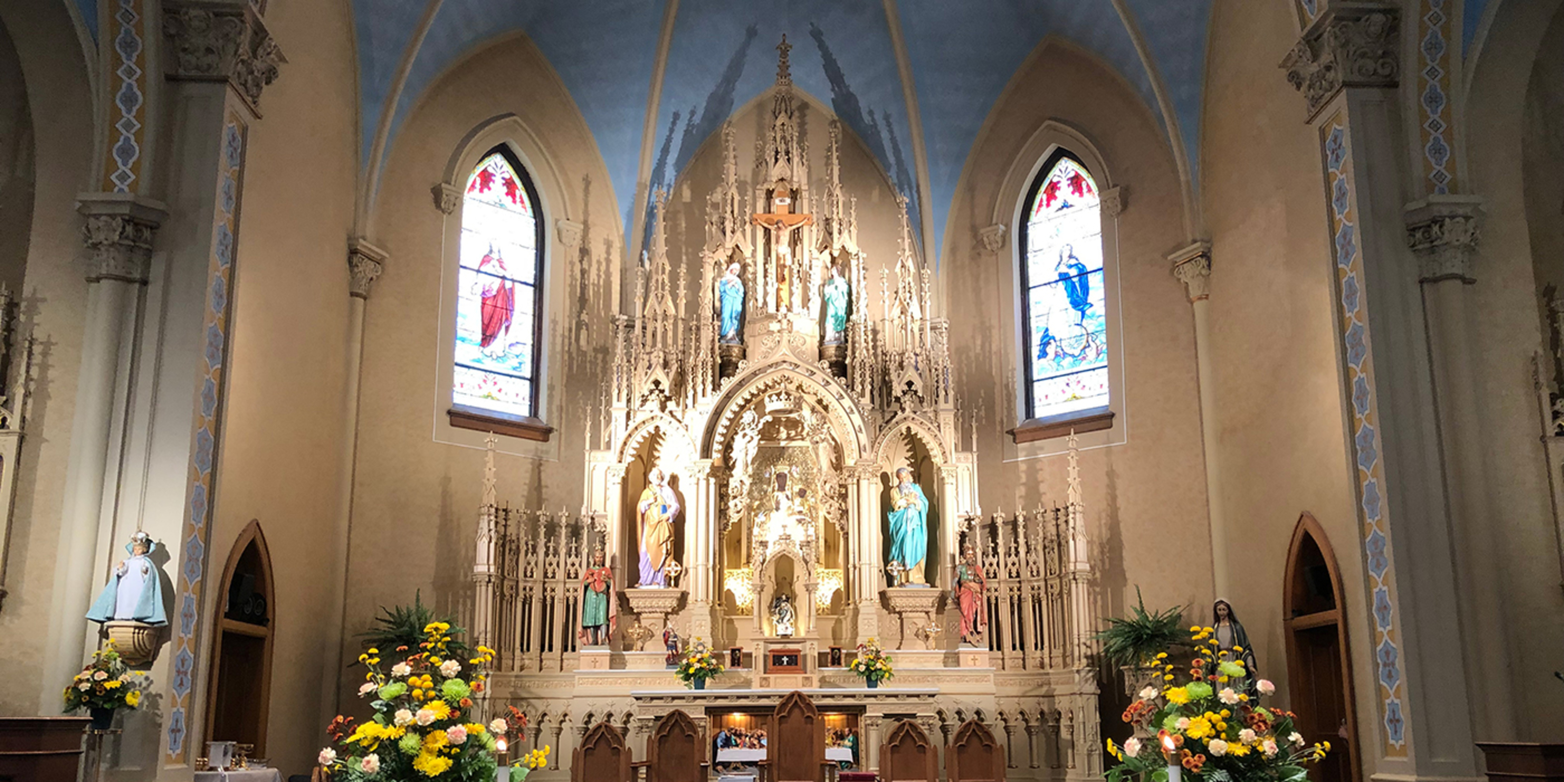 Although Nativity of the Blessed Virgin Mary has a Polish heritage, it also includes other ethnicities. Hungarian statues adorn the altar, including St. Peter and St. Paul, whose relics are next to each. The restored stained-glass windows are from an unknown German artist.