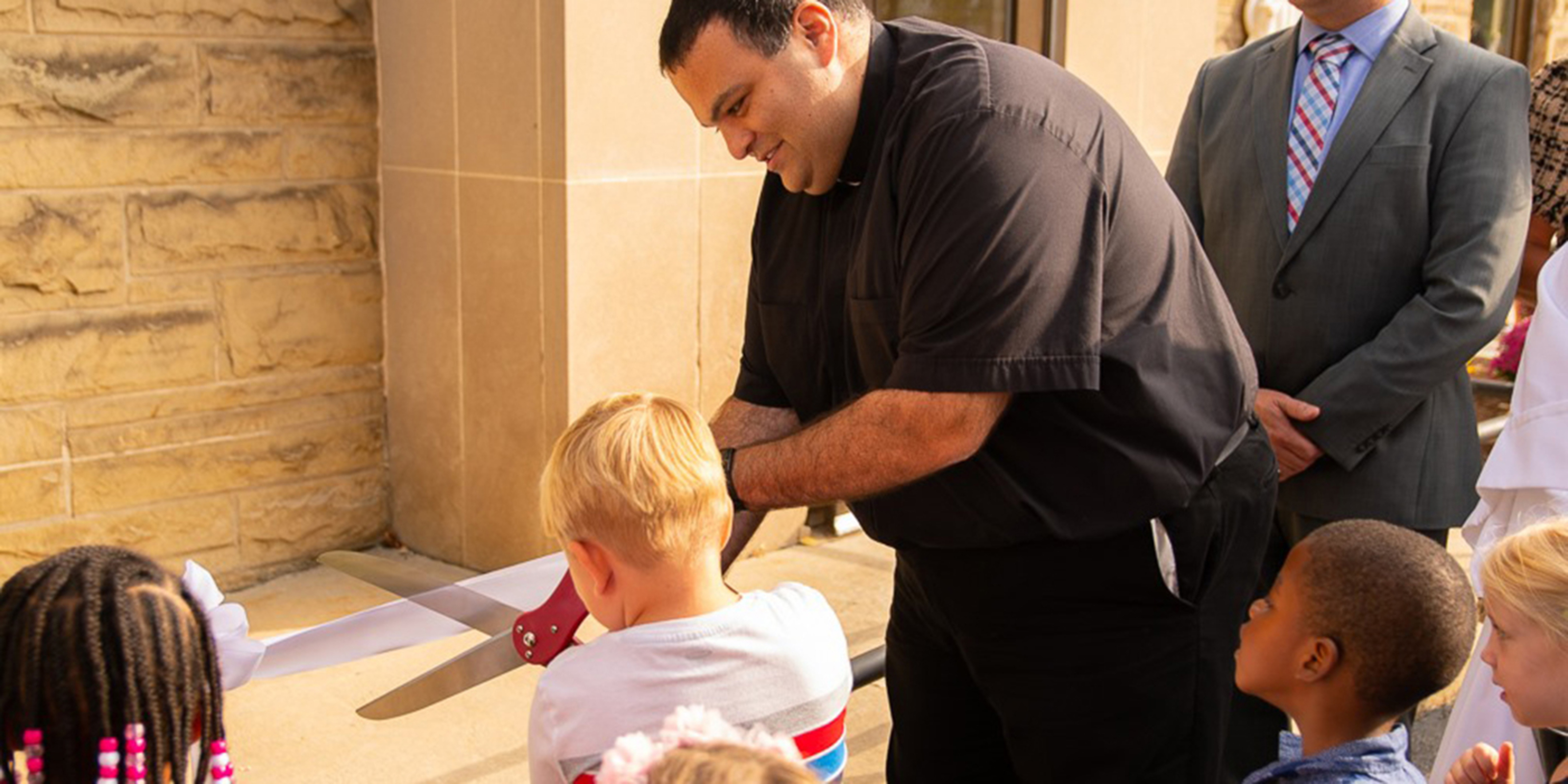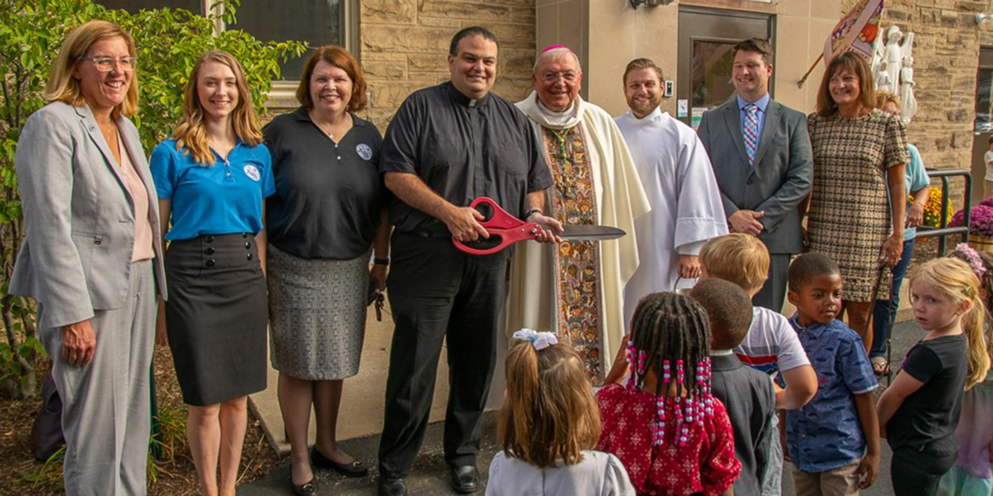 The event is the culmination of a vision created by the leadership team. Father John Betters, SS. Robert & William pastor, and co-principals Martha Dodd and Meg Cosgriff, saw a need for quality child care in the Euclid community. The team brainstormed how to expand their already established four-star preschool to include child care for the youngest learners. They did not have to look far, as the Merici Center, the former convent of the Ursuline Sisters who founded St. William School in 1947, was available and was determined to be the perfect space. Extensive renovation occurred during the summer to repurpose the solid, stone building into offices, classrooms and an atrium for the Good Shepherd Program.