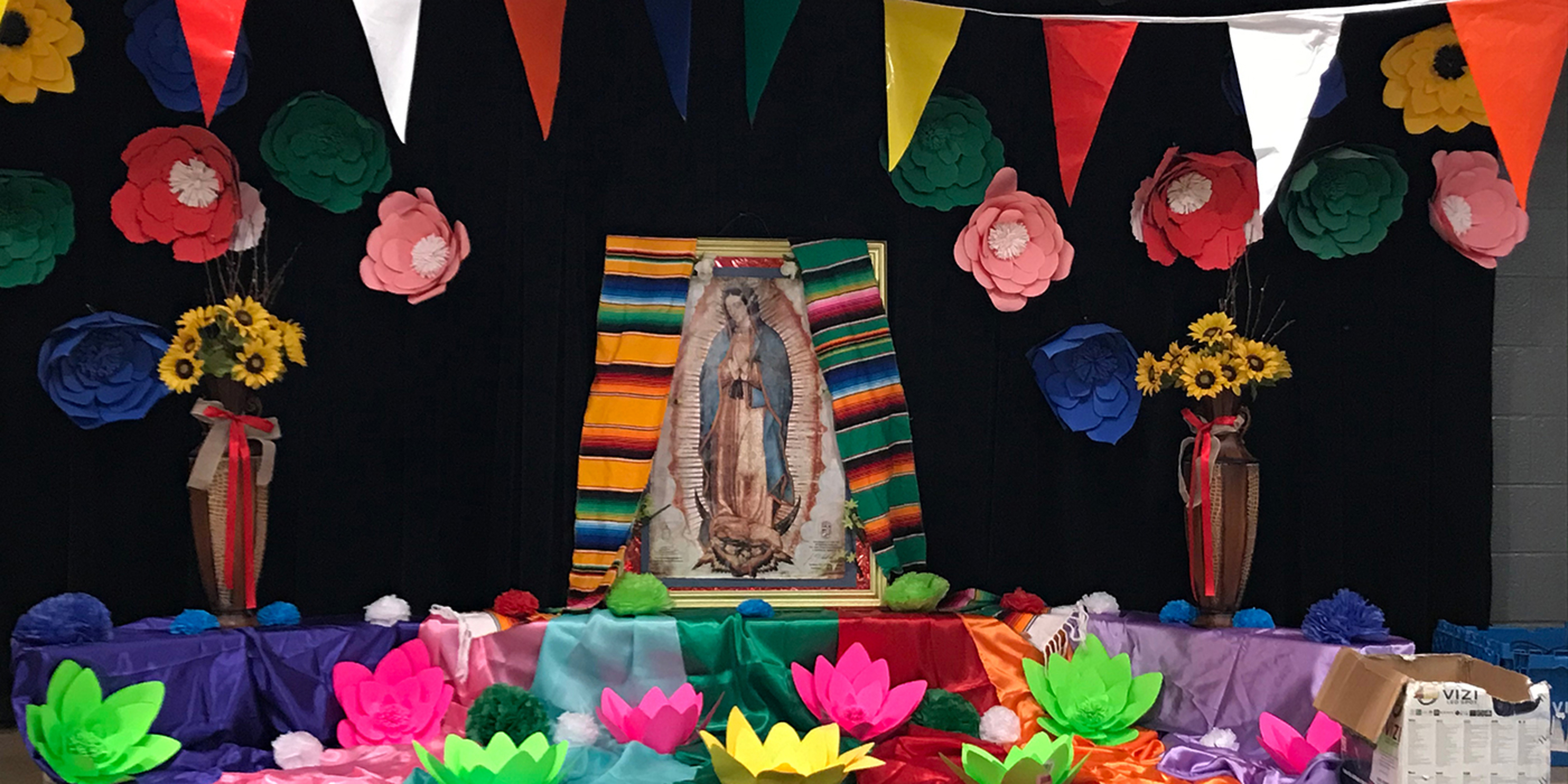 The celebration continued in Fogarty Hall after Mass with tamales, chicken, beans and rice, pork and other food, as well as music, dancing and singing.