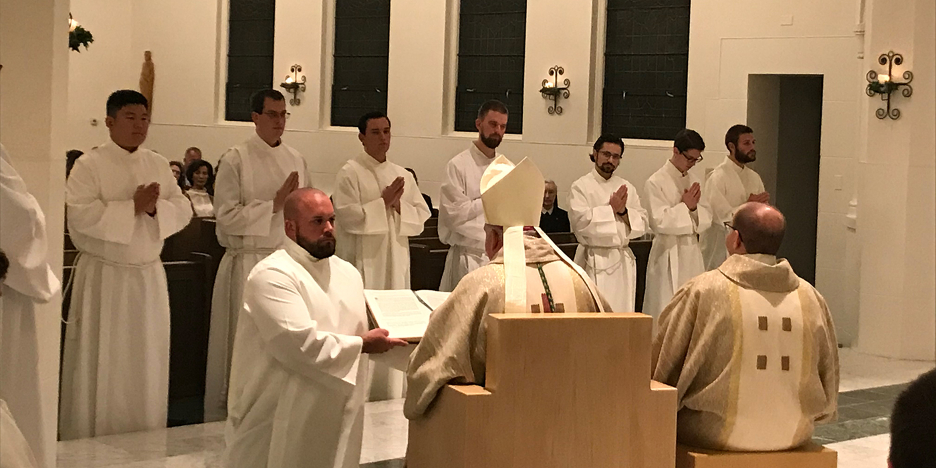 As another step in their journey toward the priesthood, seven students of Saint Mary Seminary were instituted into the ministry of lector by Bishop Nelson Perez during a Mass on Oct. 11 in Resurrection Chapel at the Center for Pastoral Leadership in Wickliffe, where the seminary is located.