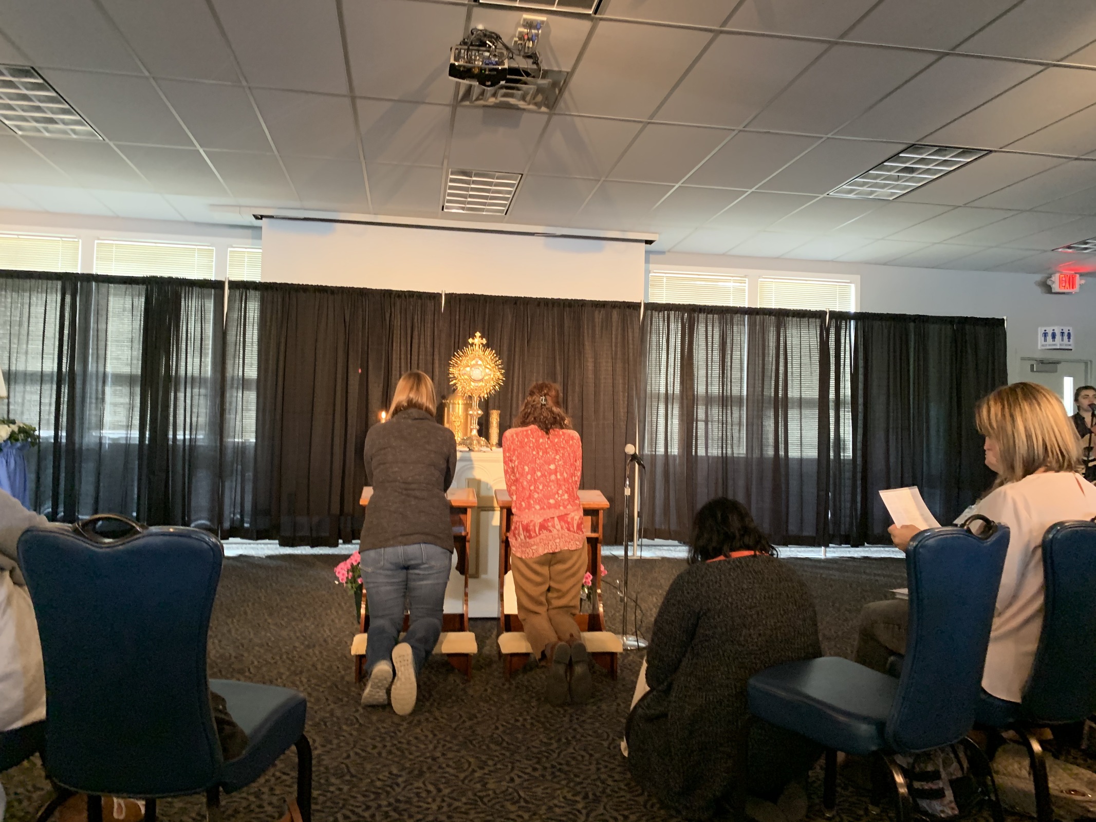 The group was divided into half with one group heading to the Family Center for adoration and an opportunity for confession while the other half enjoyed lunch. Fourteen priests from throughout the diocese volunteered to serve as confessors for the event.