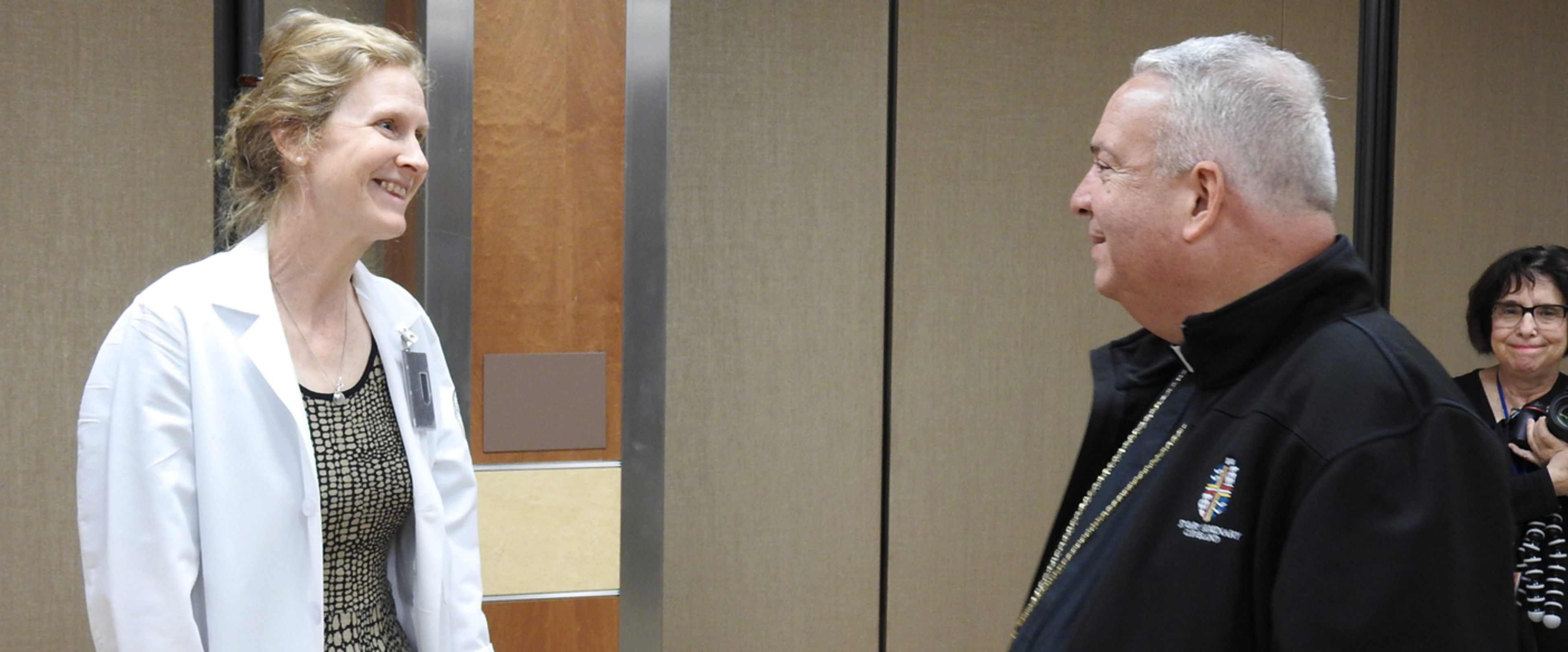 Father Maurice D’Souza, a VA chaplain, guided the bishop through a maze of hallways explaining services and introducing the leader of the Catholic Diocese of Cleveland to the facility’s administrators, fellow chaplains, patients, staff and others.
