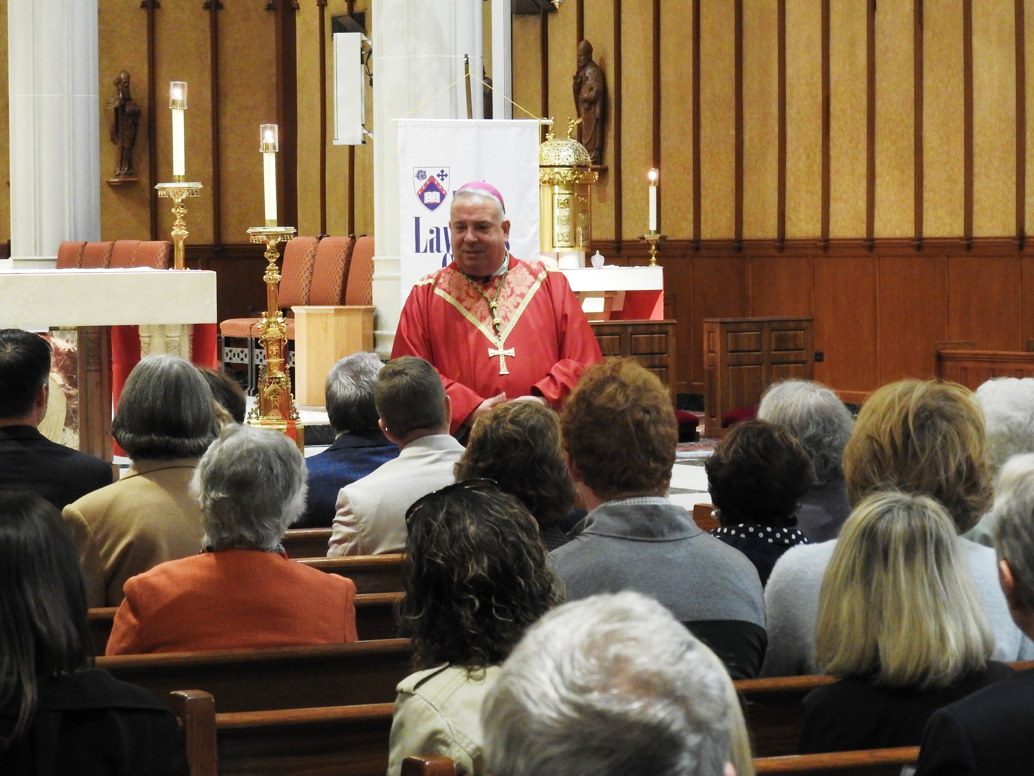 Noting that he often goes to the wellspring where he felt the call to his vocation, the bishop shared a story of a mosaic commissioned for a seminary chapel in another diocese in which some of the bishops of that diocese are interred. The artist decided to depict the last judgement, showing human bones with a miter and a broken crosier – symbols of a bishop – in the midst of the bones. Bishop Perez said the artist showed that at the end of time, “That stuff is not important; it doesn’t matter. It’s what you did with ‘that stuff,’ with your life that matters. I wasn’t born a bishop. I was baptized as a disciple of Christ. What did you do with the gifts that you were given?” he asked. “That’s what really matters at the end of time.”