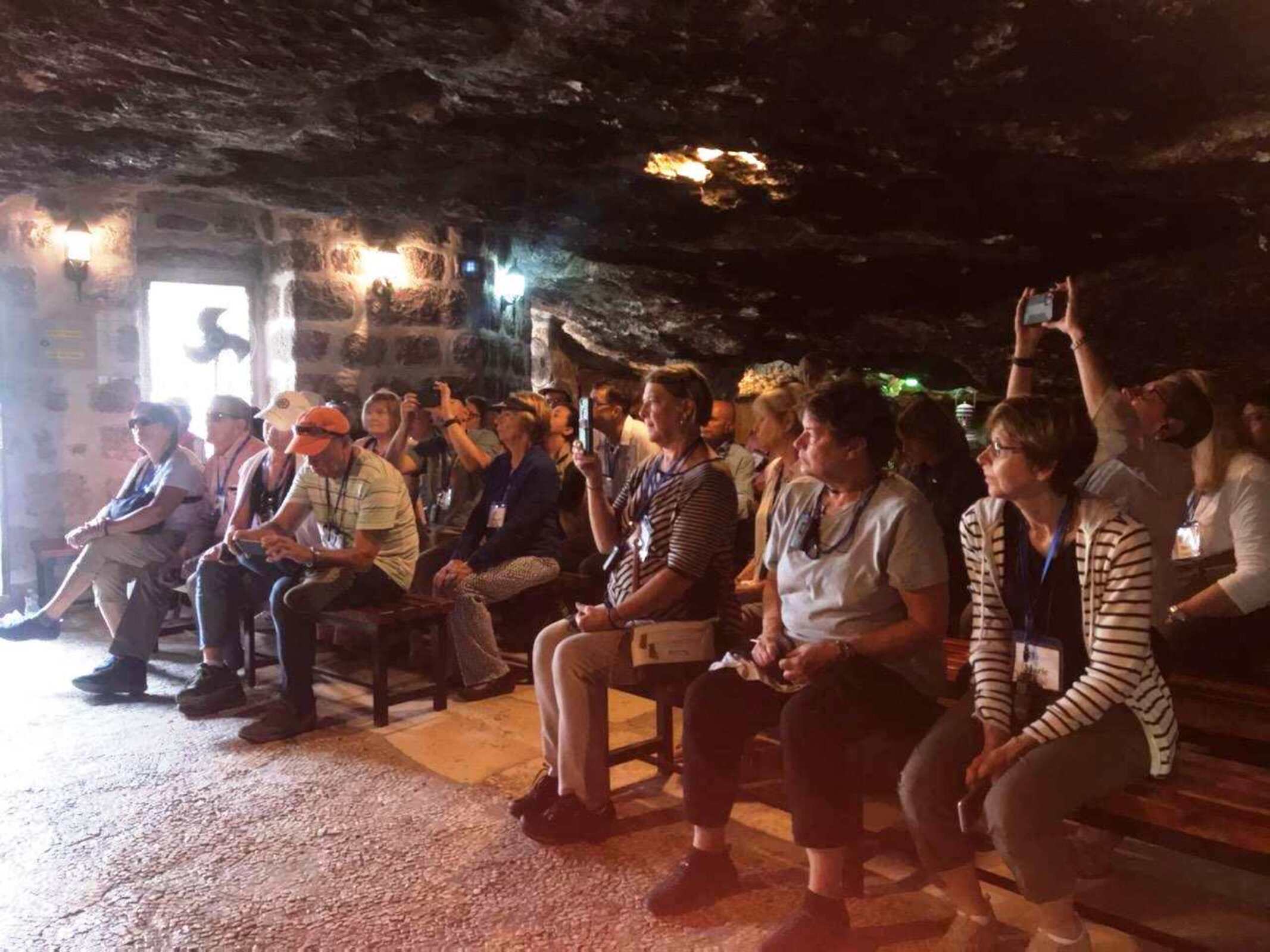 The pilgrims spent the day in Bethlehem, the birthplace of Jesus. We began our day at the Shepherd’s Field. It is the site where the angels appeared to the shepherds who were watching their sheep when the angels announced that Jesus was born. This site has caves from the time of Jesus in which shepherds would have spent the night with their sheep. After touring the caves, the pilgrims visited the Chapel at the Shepherd’s Field which was built over the spot where the angels appeared. Then as pilgrims we toured the birthplace of Jesus in the Church of the Nativity. Pilgrims were able to touch the very spot where Jesus was born.