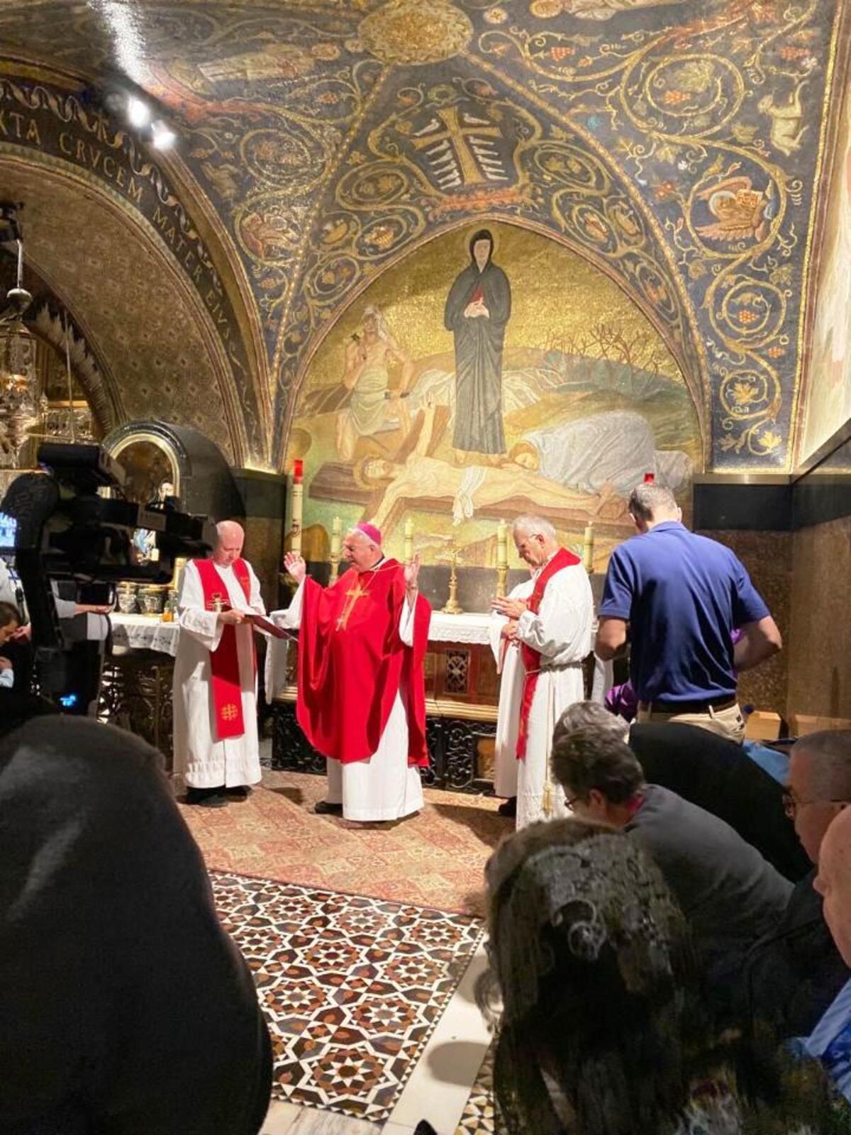 The pilgrims started the day with Mass and then headed over to the Church of the Dormition. This church is where tradition says Mary “fell asleep.” From there her body and soul were assumed into heaven. The Upper Room, where Jesus celebrated the Last Supper with his apostles, is located steps away from the Church of the Dormition.
