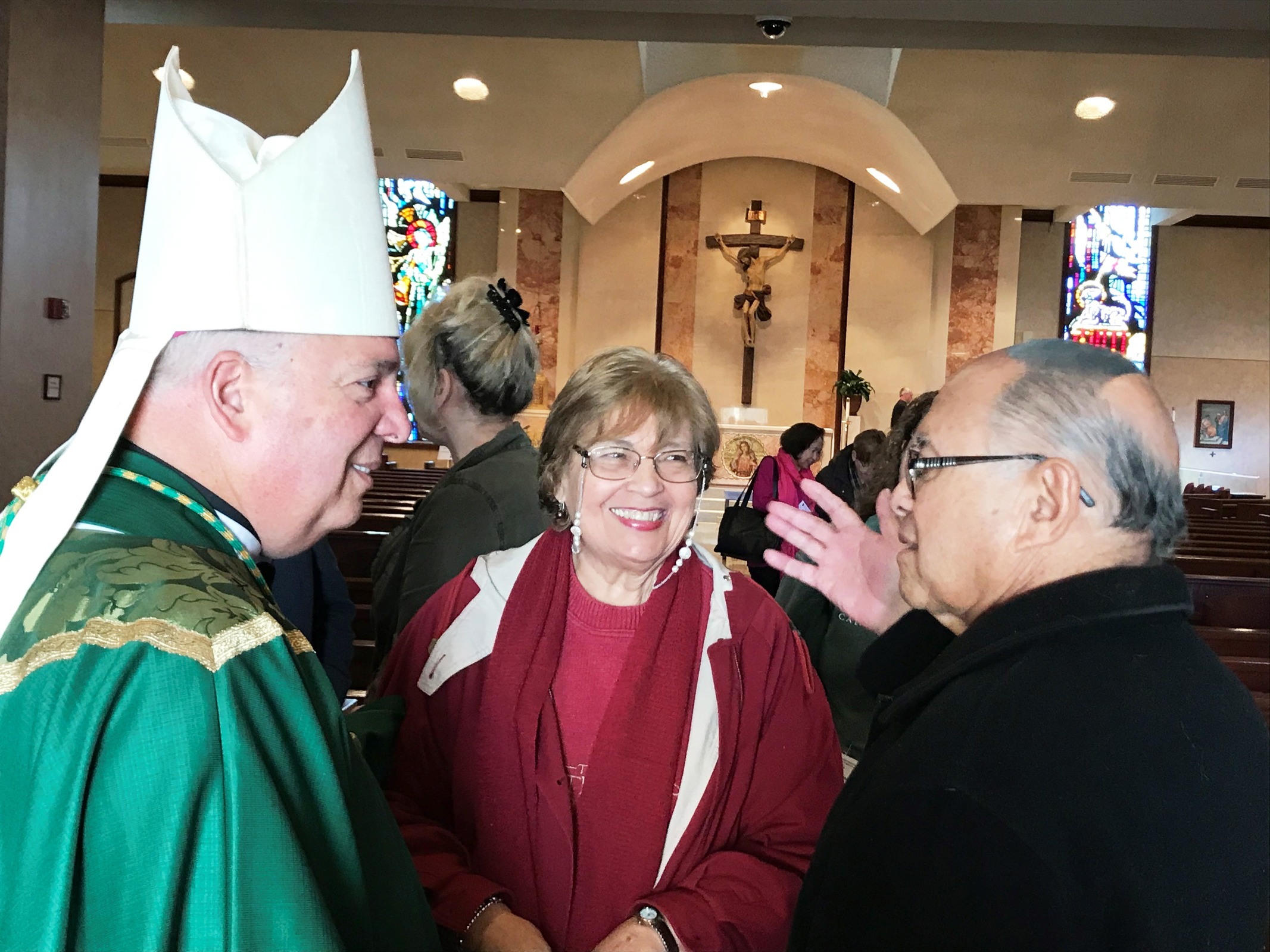 After Mass, he greeted conference attendees and met some of the speakers before the group moved downstairs to the church hall for the first conference sessions.