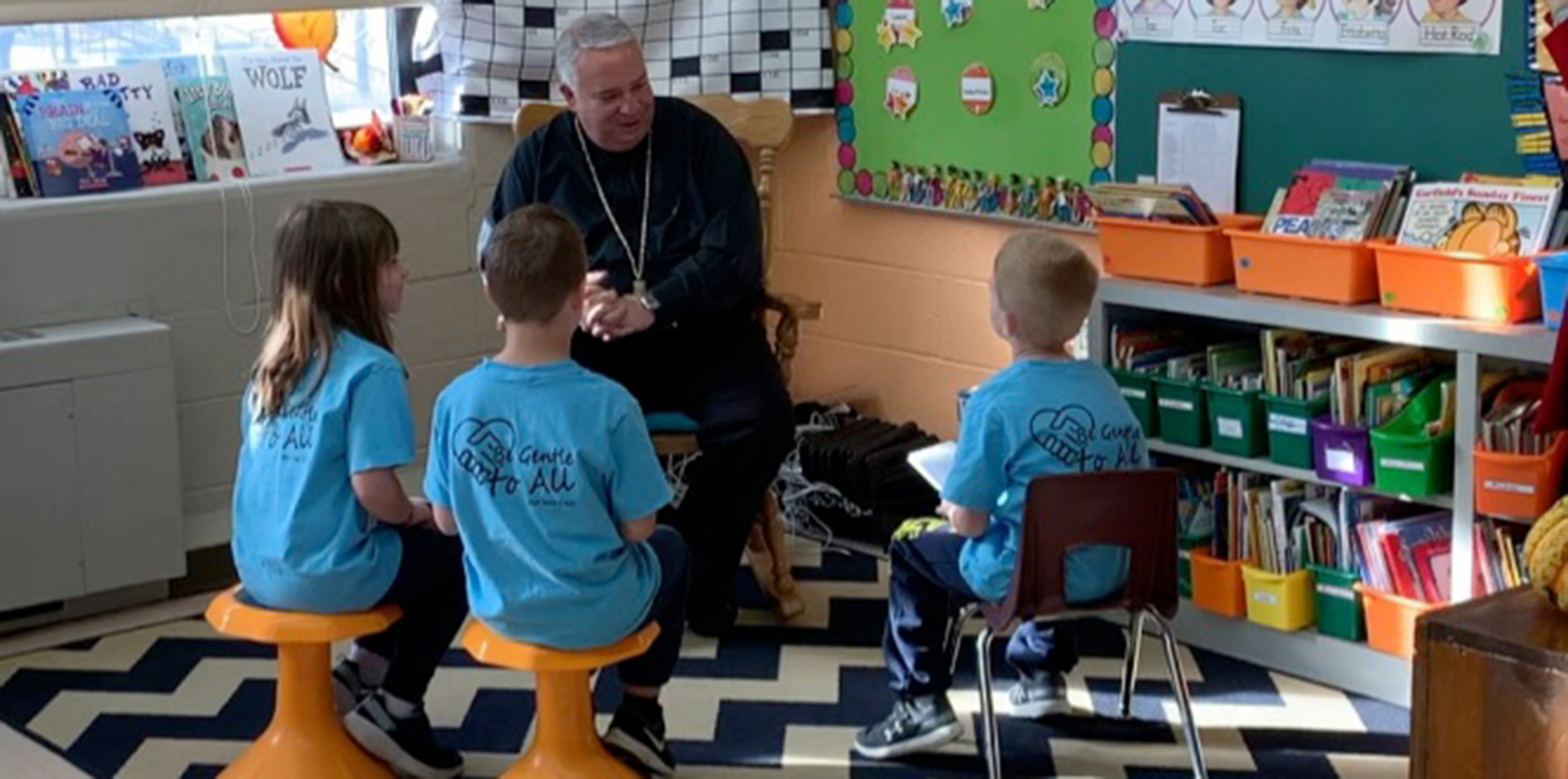 When he arrived, the bishop learned that the school’s theme for the year is “Be Gentle to All.” In his homily, he noted how the theme went hand-in-hand with the day’s Gospel.