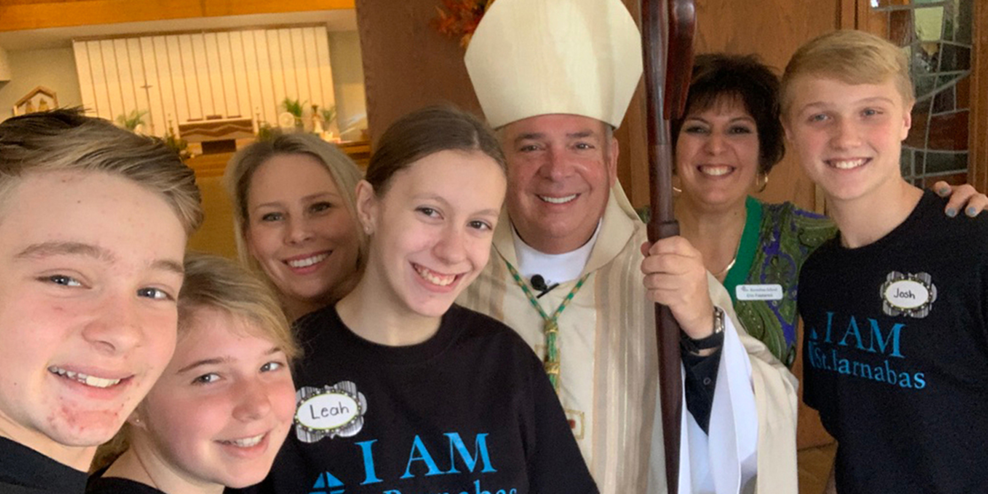 St. Barnabas students presented Bishop Perez with a handmade rosary that included the theme, which is inspired by St. Teresa of Avila. The rosary is encased in a shadow box for display.