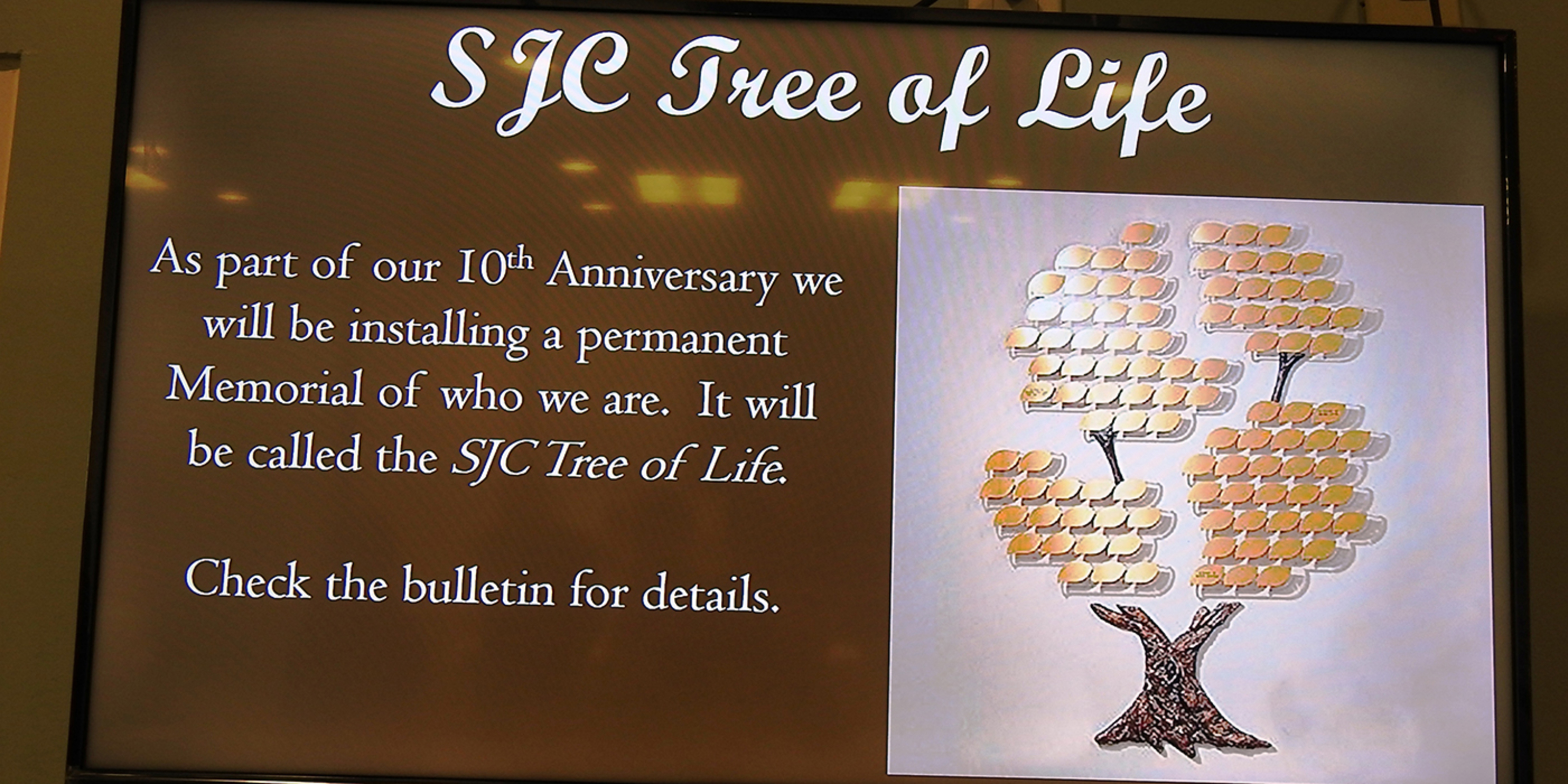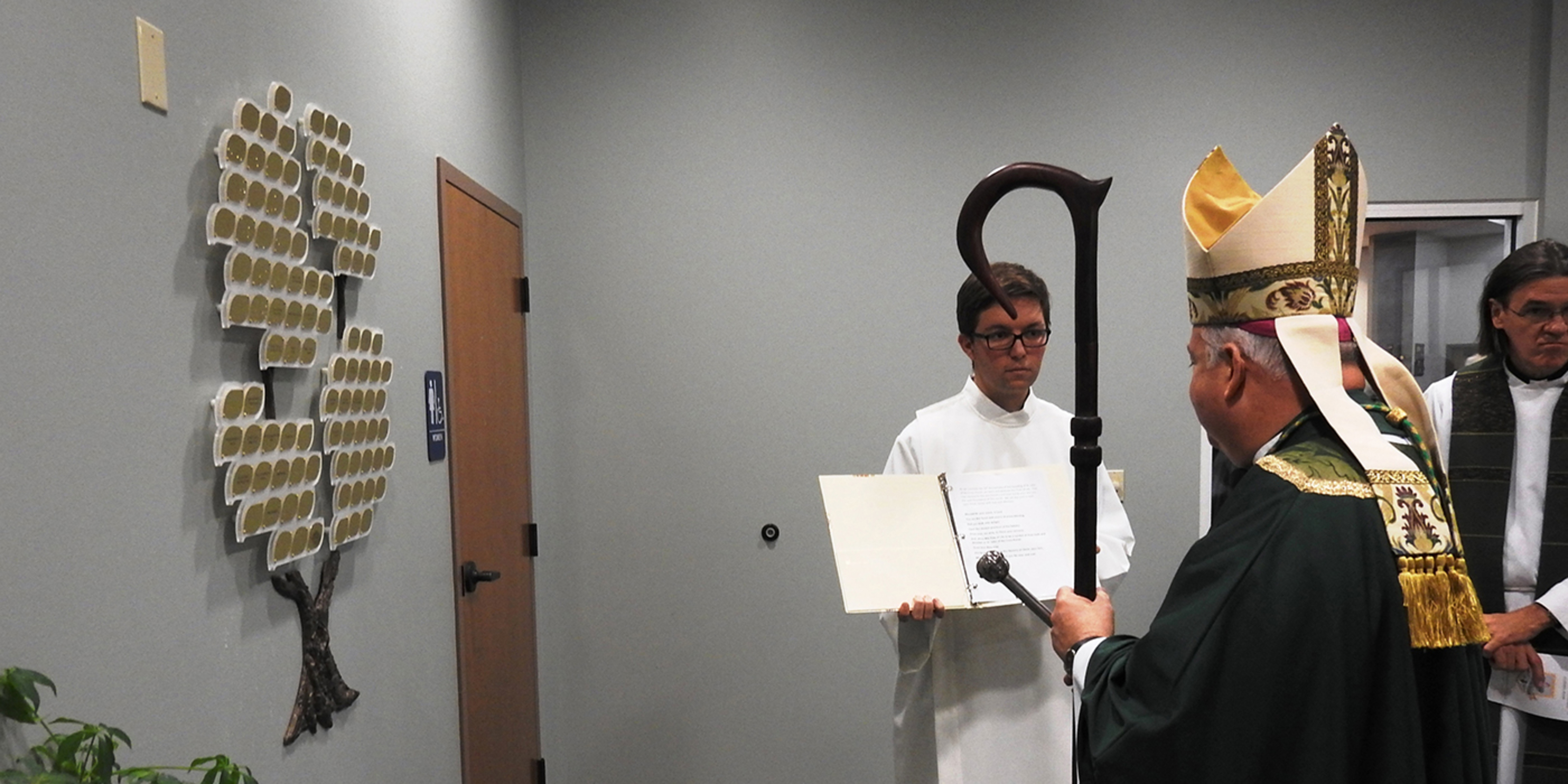 After Mass, the bishop blessed the parish’s new Tree of Life, which hangs on the wall in the gathering area. Leaves can be purchased as memorials and are inscribed with the names of those who have made contributions to the parish, Father Betters explained.