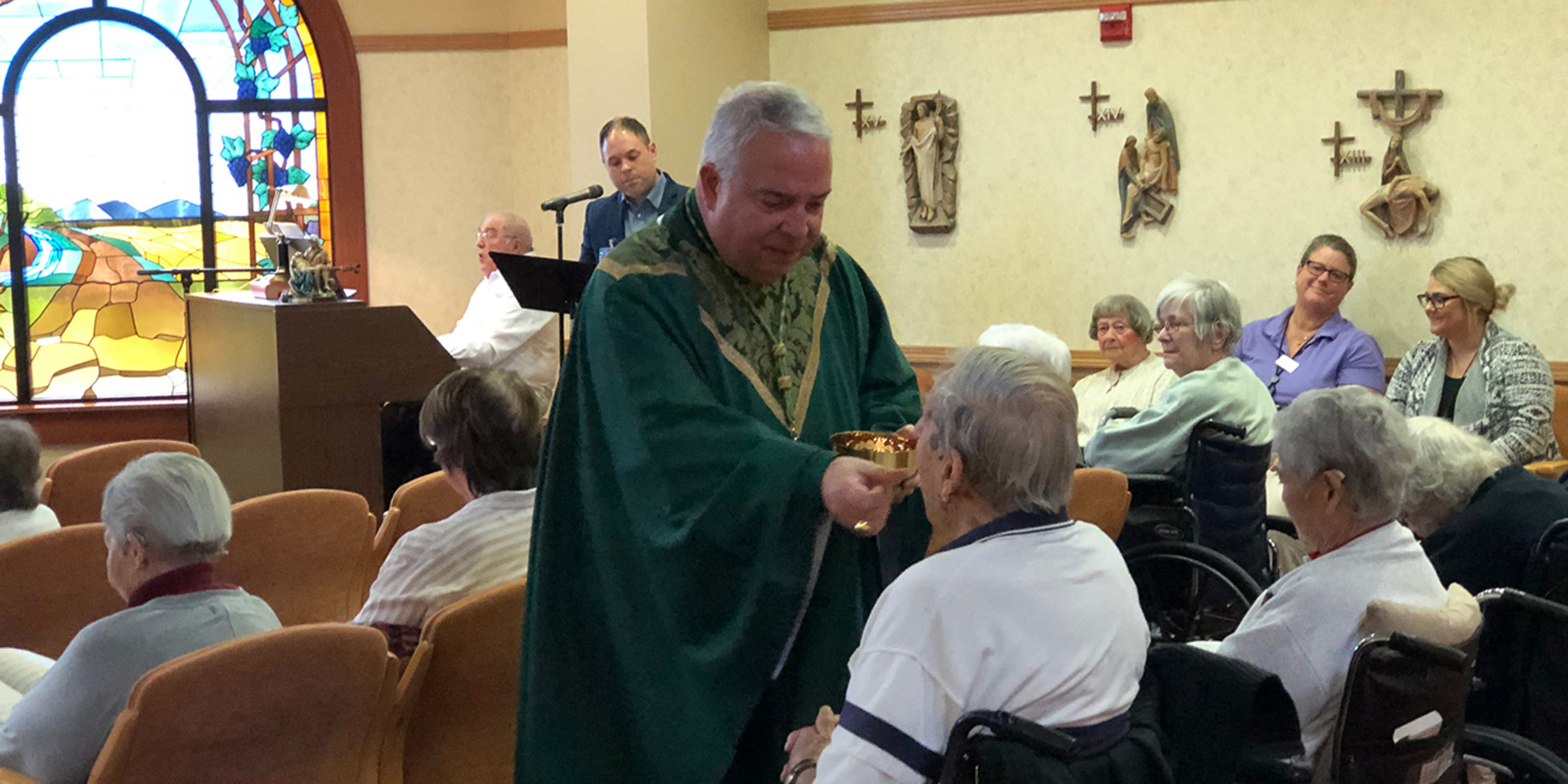 With Thanksgiving approaching, Bishop Nelson Perez reminded residents at St. Mary of the Woods in Avon of how blessed they are to be able to share in the Eucharist regularly. He told those gathered for the Mass he celebrated on Nov. 19 that there are places in the world where people are lucky if they can attend Mass monthly – or in some instances, even once a year.