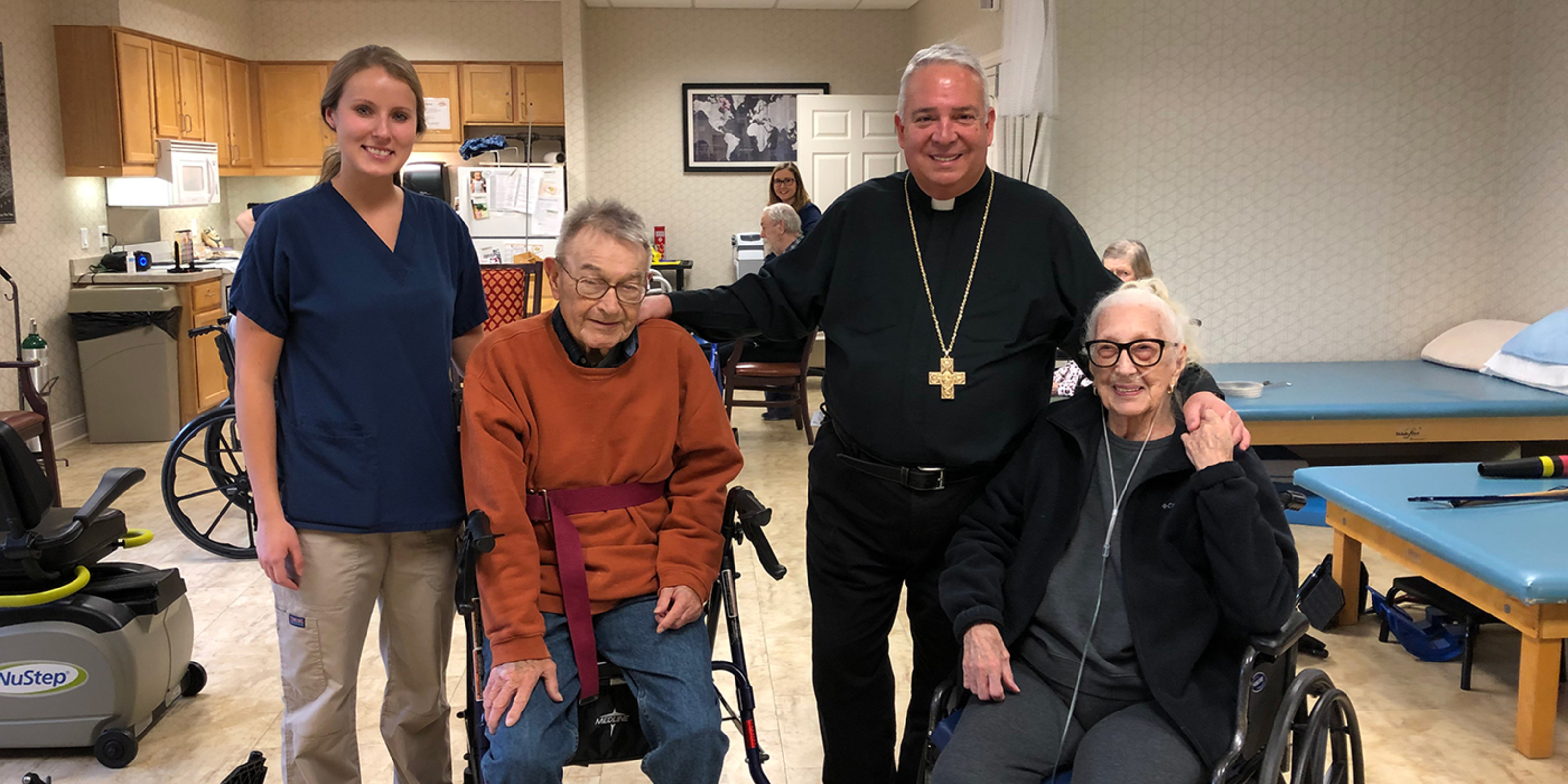 The residents were touched when Bishop Perez personally distributed communion to those who were unable to walk to the altar. A tour of the assisted, skilled and independent living facilities followed Mass, as well as a reception where the bishop met resident Mary Spadaro who will celebrate her 100th birthday on Thanksgiving.