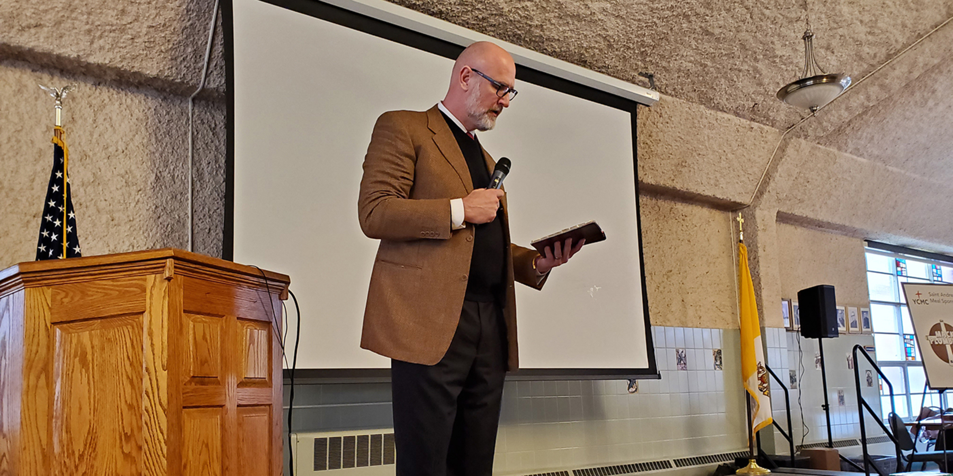 More than 100 teenage young men and their fathers gathered on Feb. 1 at the Center for Pastoral Leadership for the second annual daylong Young Catholic Men’s Conference. This year’s theme, “Put on the full armor of God” (Ephesians 6:11) featured guest speakers, teen breakout sessions, meals throughout the day, the opportunity for the sacrament of reconciliation and Mass.