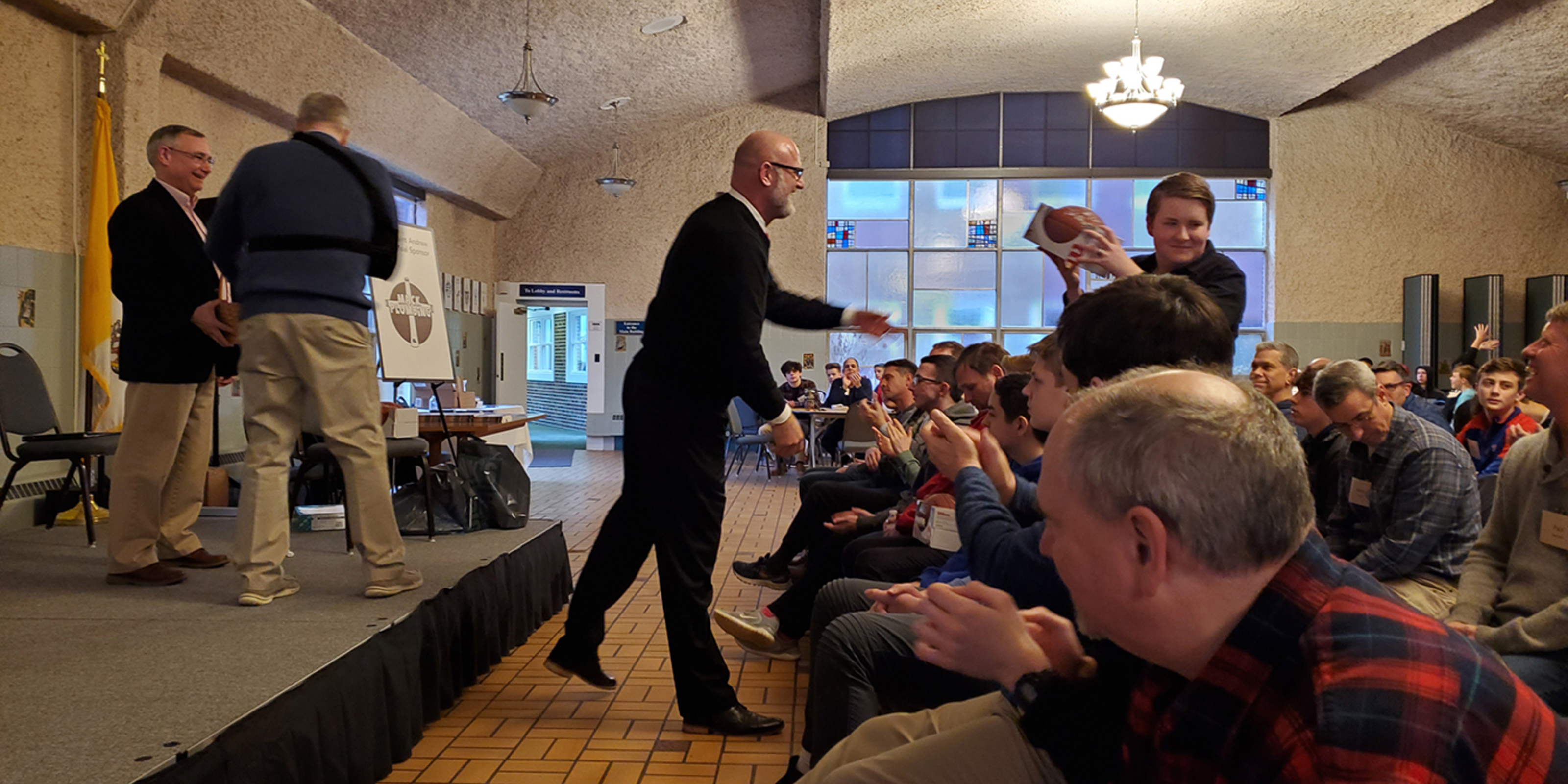 In a morning session when keynote speaker Elvis Grbac, Villa Angela-St. Joseph High School athletic director, took the stage, he placed his Super Bowl XXIX championship ring -- won as a member of the San Francisco 49ers -- on the stage floor, front and center for all to see. Comparing his championship ring to the crucifix, he posed the question: “Now what here really matters?” Grbac talked about the difference between putting on a football uniform and putting on the full armor of God. He explained that through his prayer life he’s convinced that the Lord wants him to go to the ends of earth telling his life’s story.