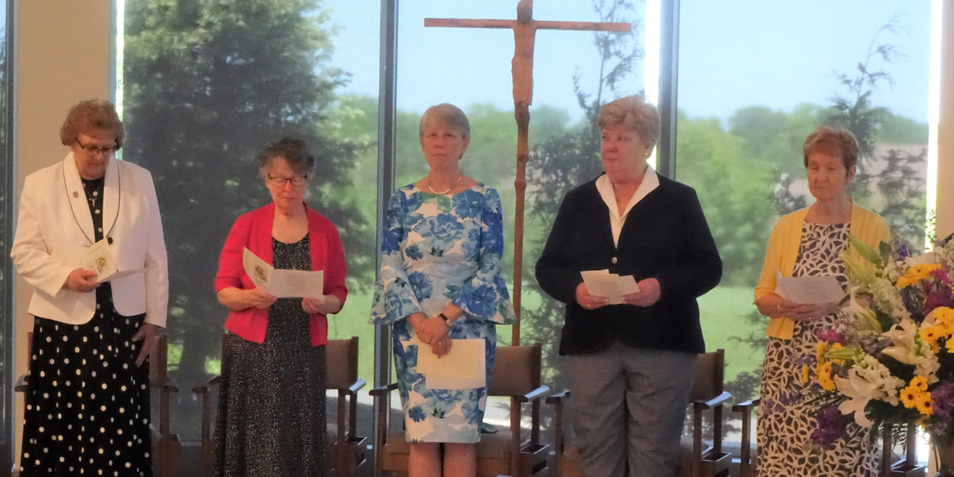 The Ursuline Sisters of Cleveland installed a new leadership team at a socially distanced ceremony June 6 at Merici Crossings, their Pepper Pike residence and congregational center. The five-person team, including a president and four council members, will serve a four-year term, implementing the directional plan set at their meeting.