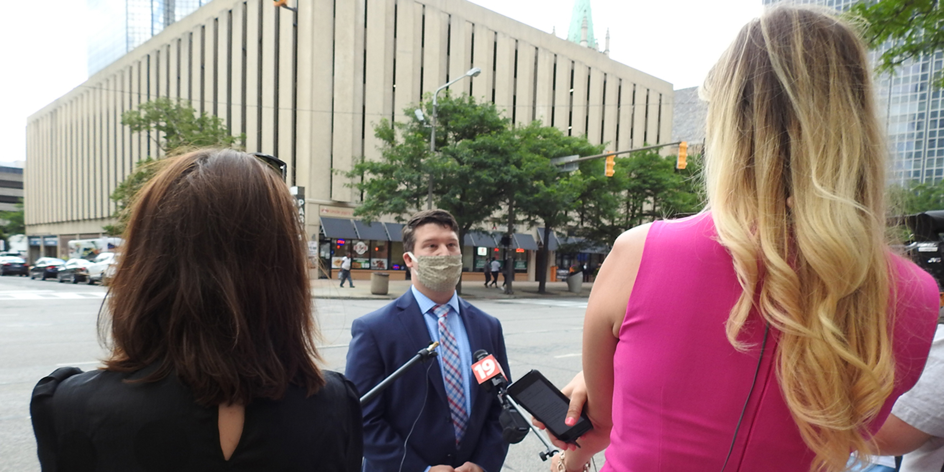 As the opening of the new school year draws closer, a group of parents rallied at noon today outside the headquarters of the Catholic Diocese of Cleveland urging school officials to allow students to return to in-person learning this fall.