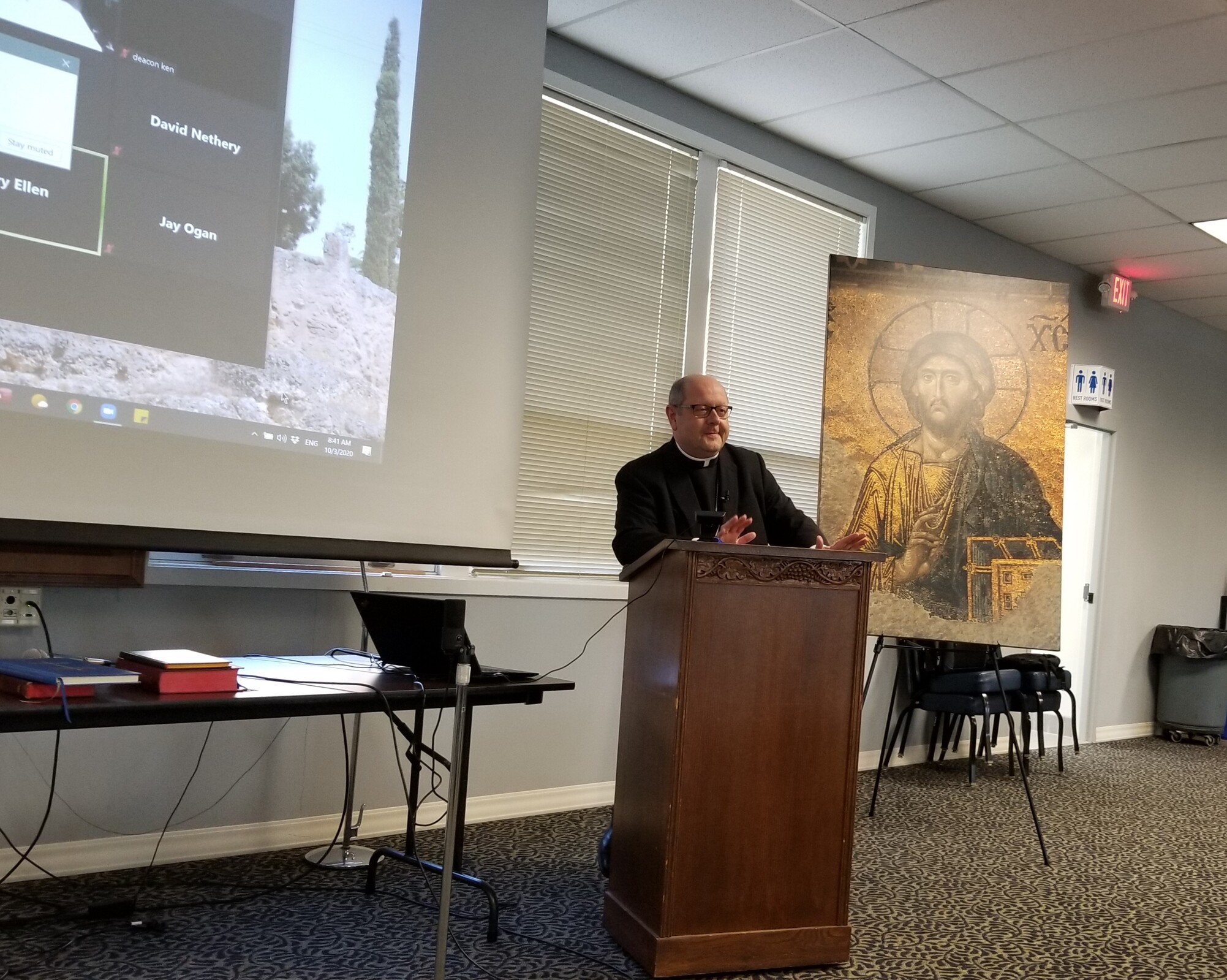 Dozens of permanent deacons from all corners of the Catholic Diocese of Cleveland heard from Bishop Edward Malesic as he addressed the annual diaconate convocation on Oct. 3 at St. Basil the Great Parish in Brecksville. Also in attendance were several wives and widows of deacons. Other deacons joined the session virtually, via webcast.