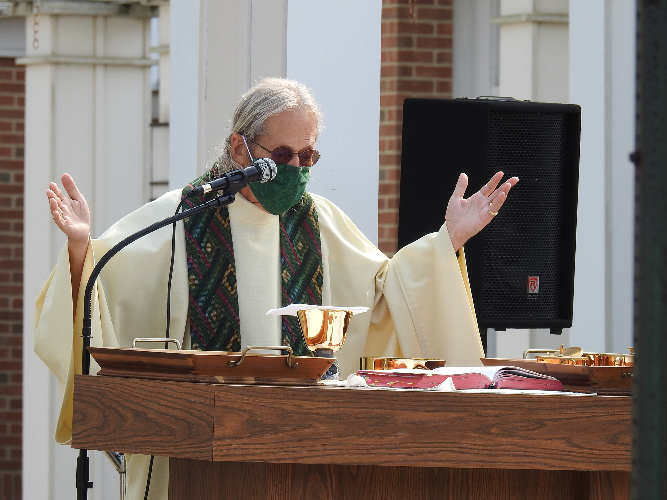 “This (outdoor liturgy) reminds me of my campus ministry days (in the Diocese of Harrisburg, Pennsylvania),” he said, telling the group that when it was too hot to celebrate Mass in the college chapel, they would move it outside. “Beware of the squirrels. Sometimes they take what you don’t want them to,” he quipped.