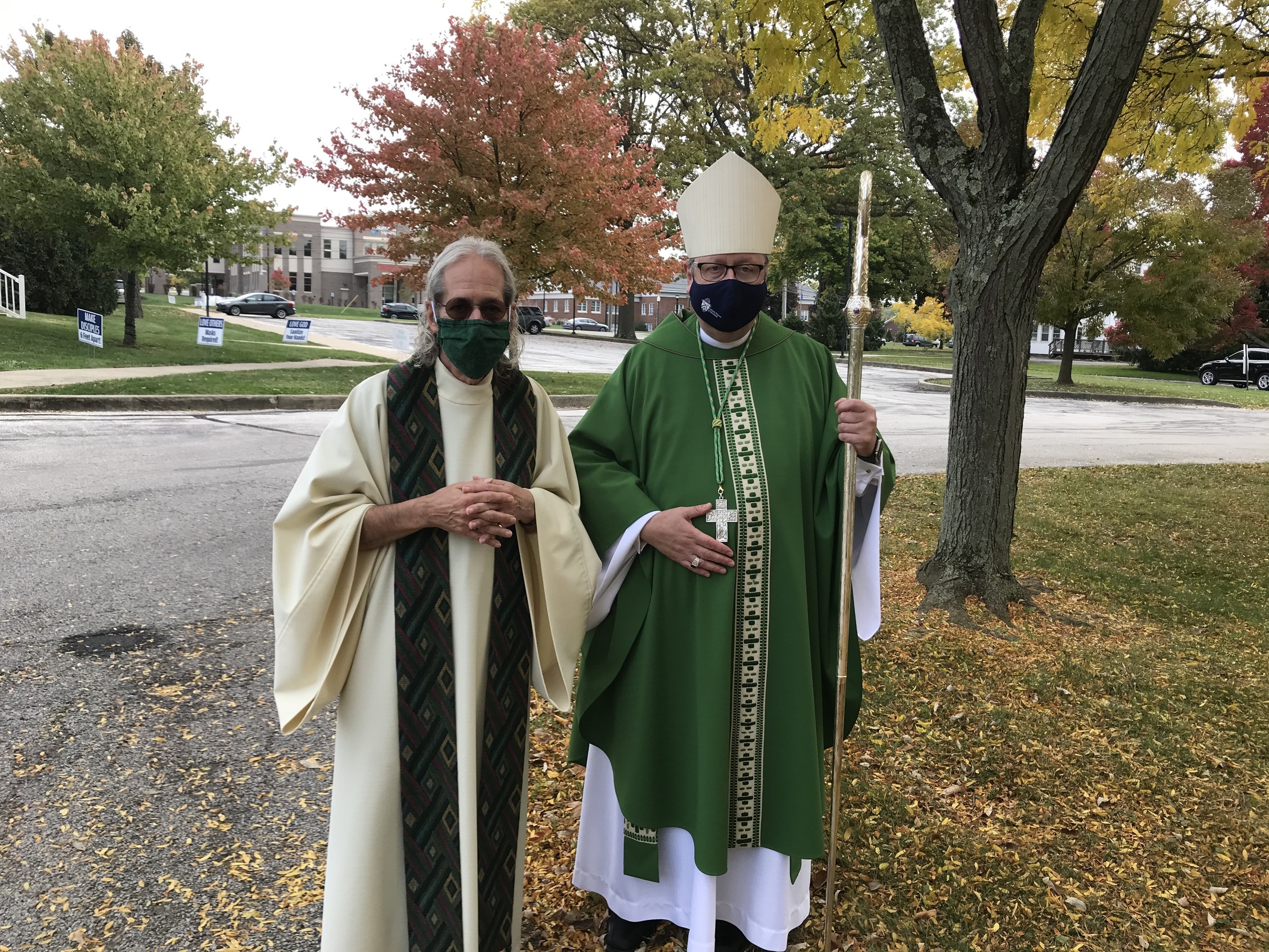 After Mass, Bishop Malesic said one of the things he’s supposed to do as a bishop is draw people together. “But I really can’t do that safely in a pandemic. It’s hard not to be able to do what comes naturally to us,” he said, mentioning hugging people, shaking hands and having physical contact with friends and family.