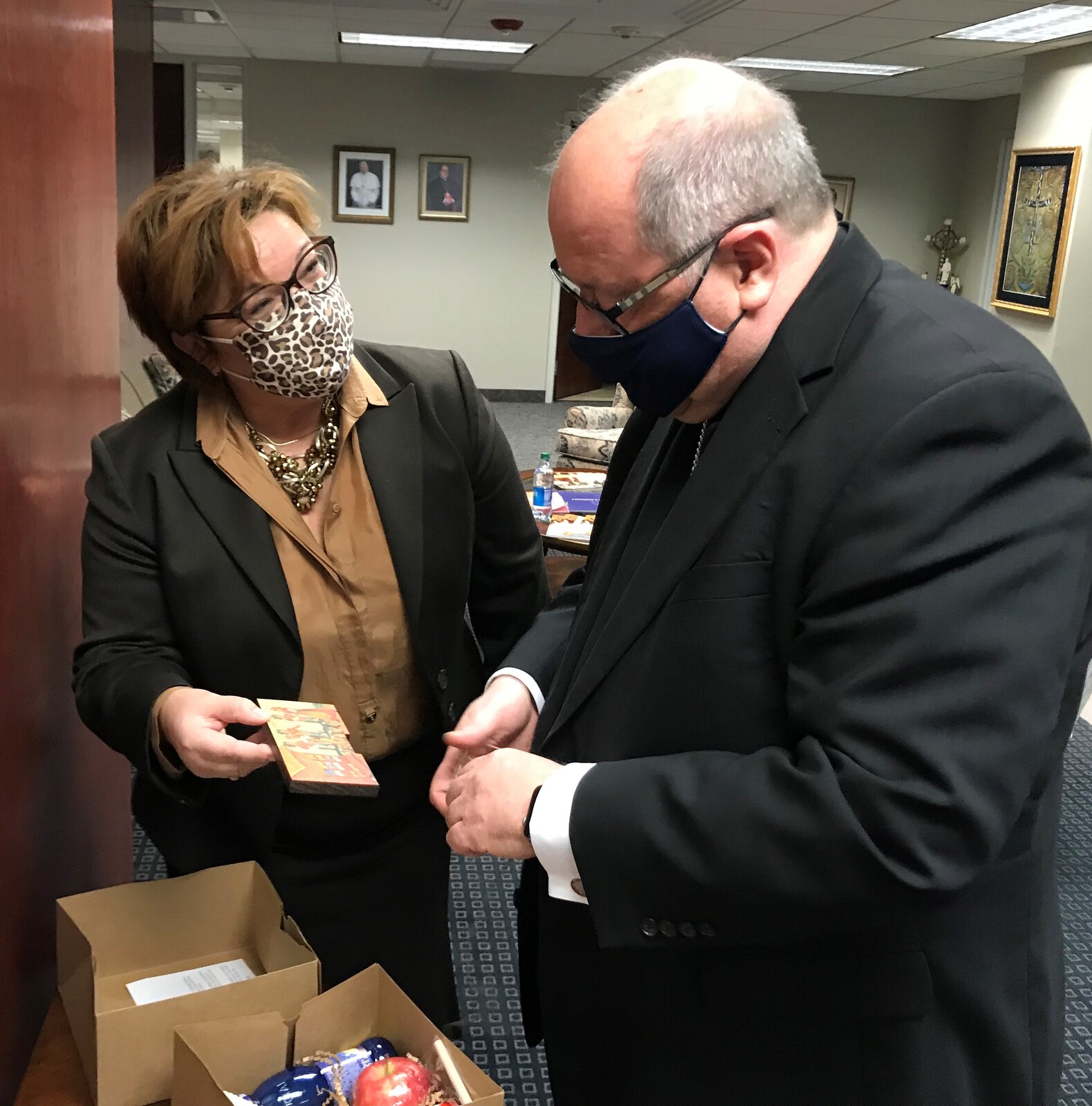 During her short visit, Jerak also presented Bishop Malesic with a book of photos from Slovenia and a bottle of wine from the Bela Krajina region, which was home to the bishop’s grandparents before they immigrated to the United States.