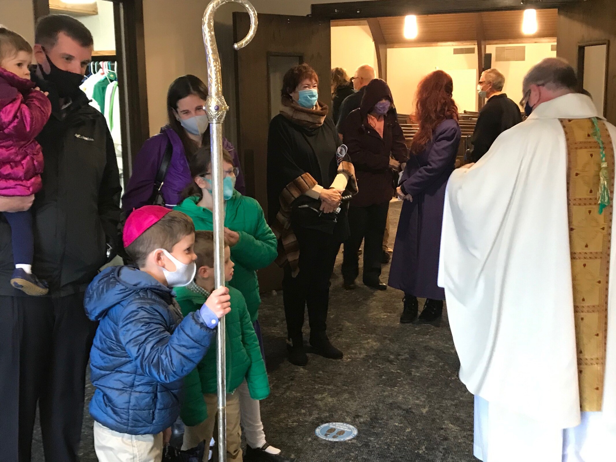 Mass on the solemnity of Christ the King, Nov. 22, was a special celebration at St. Bernadette Parish in Westlake. Nov. 19 marked the 70th anniversary of the parish and Bishop Edward Malesic was on hand to celebrate the 11 a.m. Mass. Concelebrants were Father Phil Racco, St. Bernadette’s pastor, and Father Kevin Fox, parochial vicar. Deacon Mark Cunningham assisted.