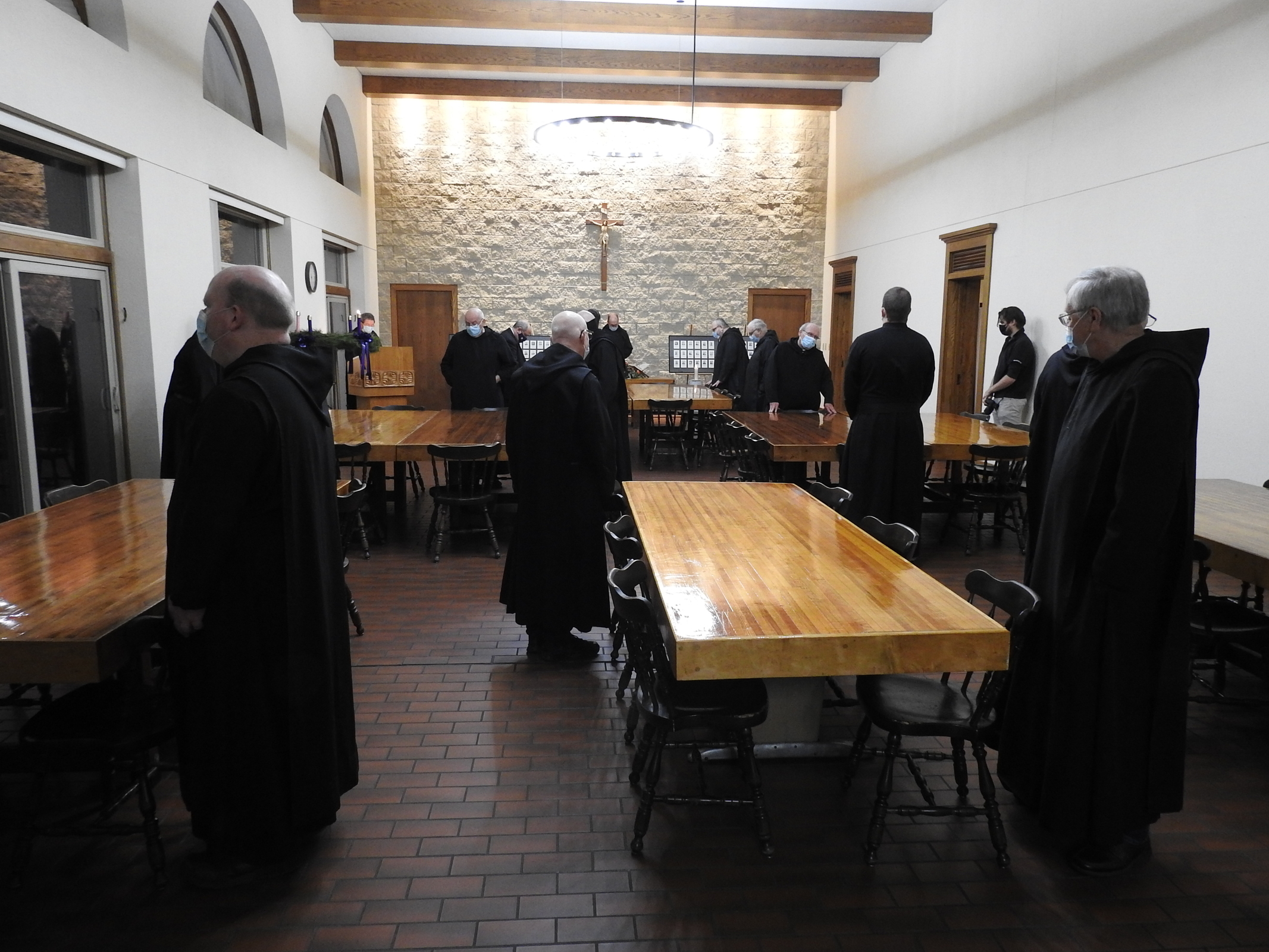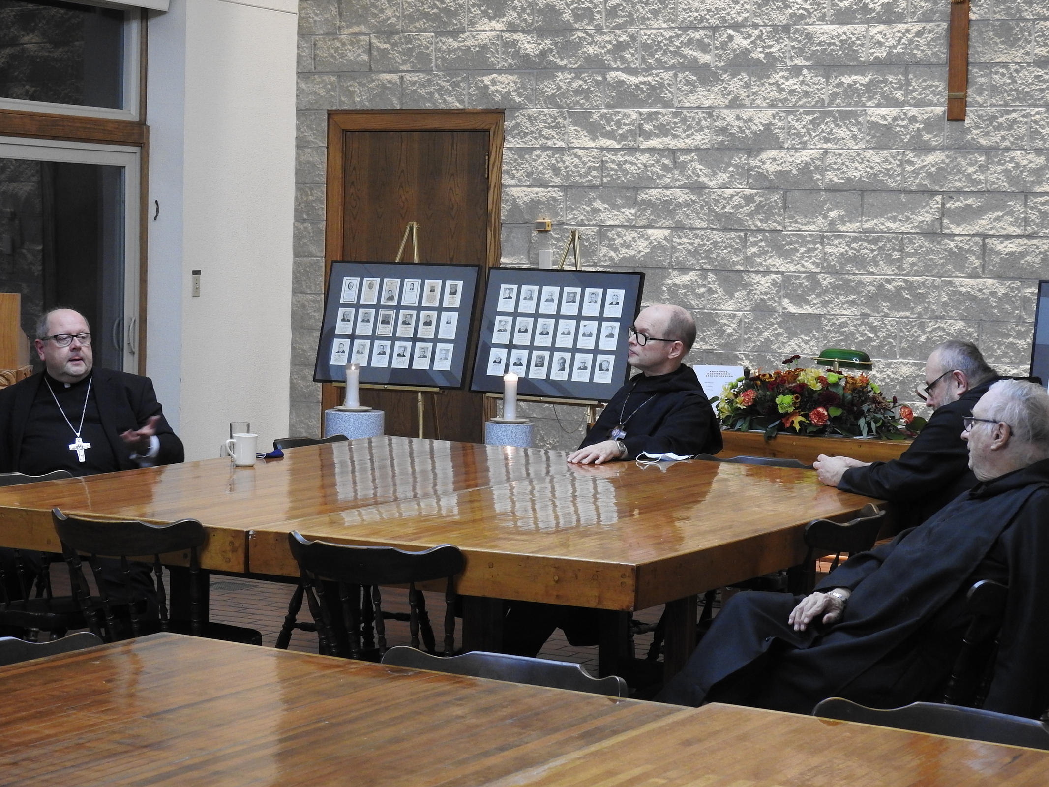 Led by Abbot Gary Hoover, OSB the monks welcomed Bishop Edward Malesic on Nov. 30 for evening prayer, an ethnic dinner that included stuffed cabbage, sausage and strudel, and conversation.