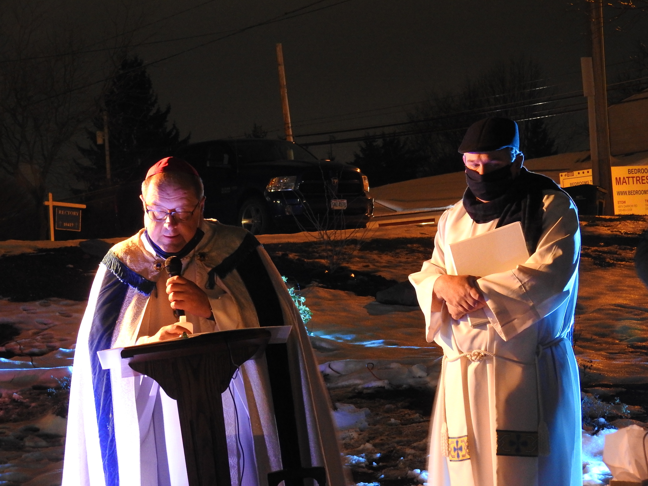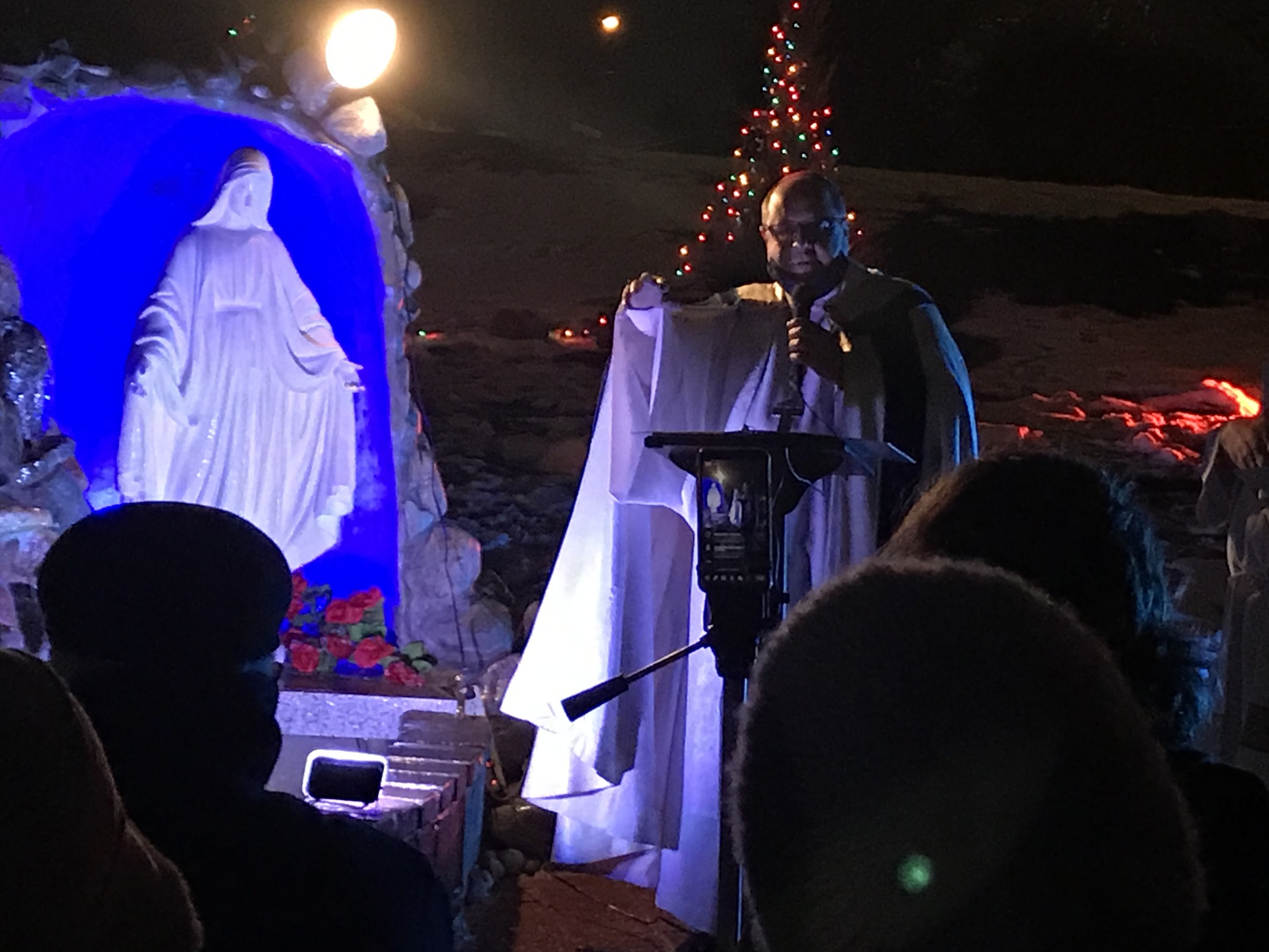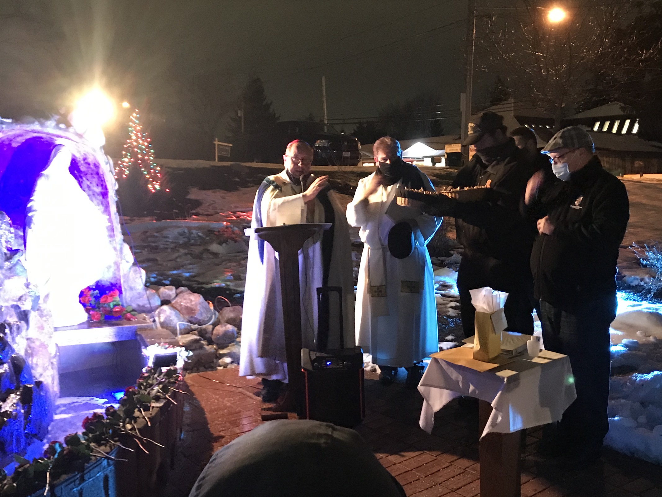 Bishop Edward Malesic dedicated the grotto during a brief outdoor ceremony on Dec. 8, the feast of the Immaculate Conception. The ceremony was livestreamed on the parish Facebook page.