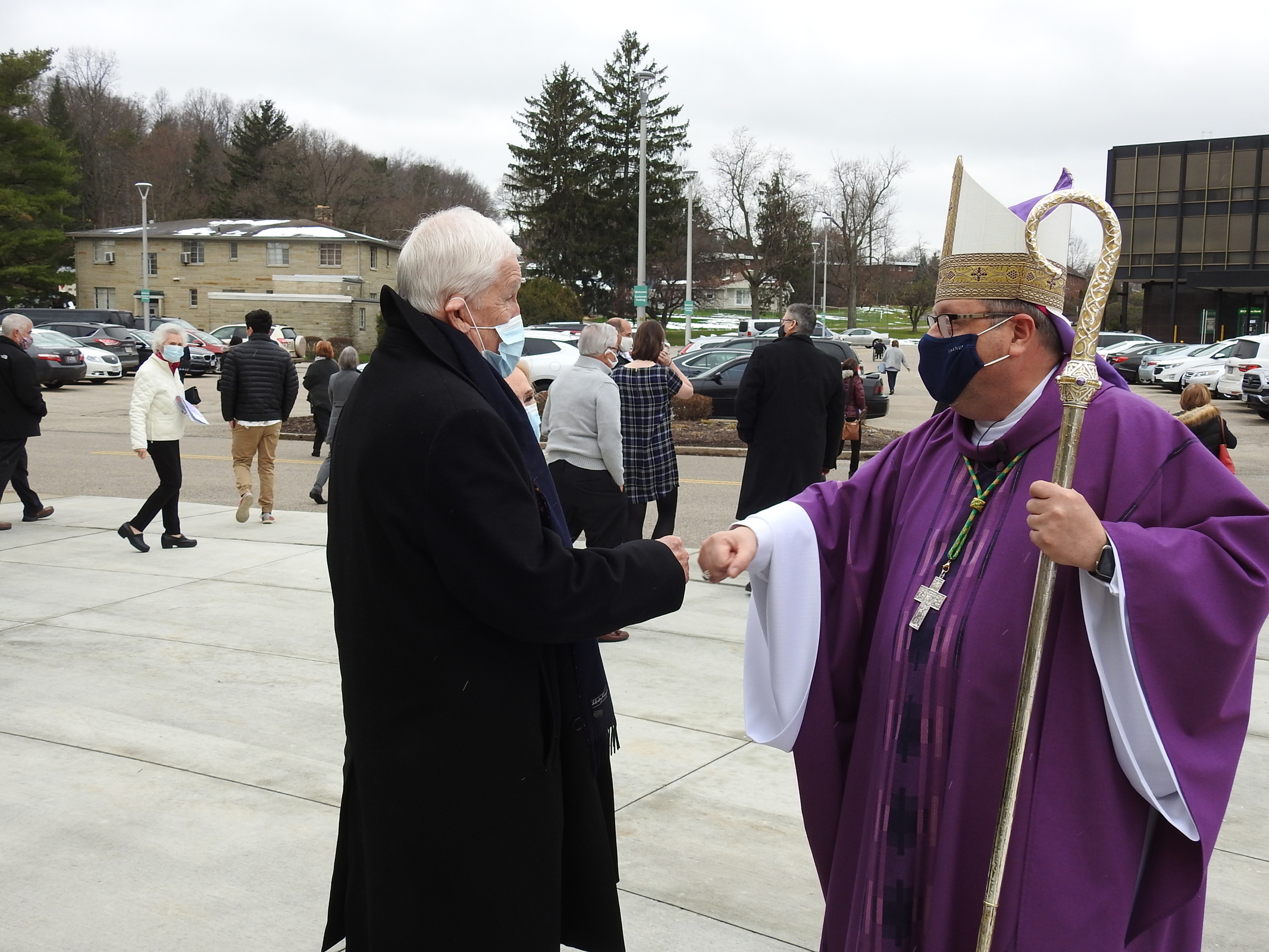 After Mass, Bishop Malesic spent some time greeting the faithful – wearing face masks and socially distanced – outside the church.