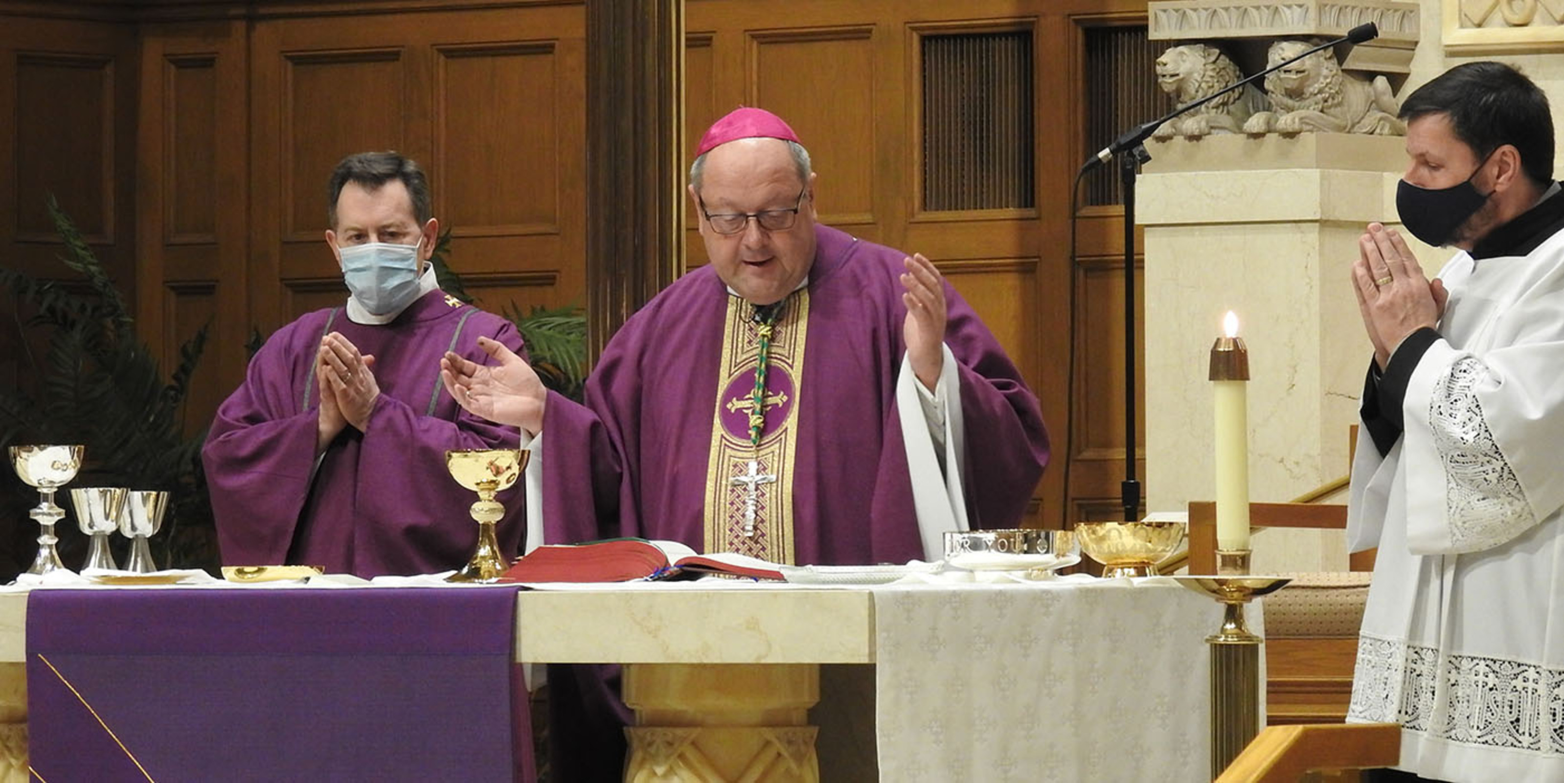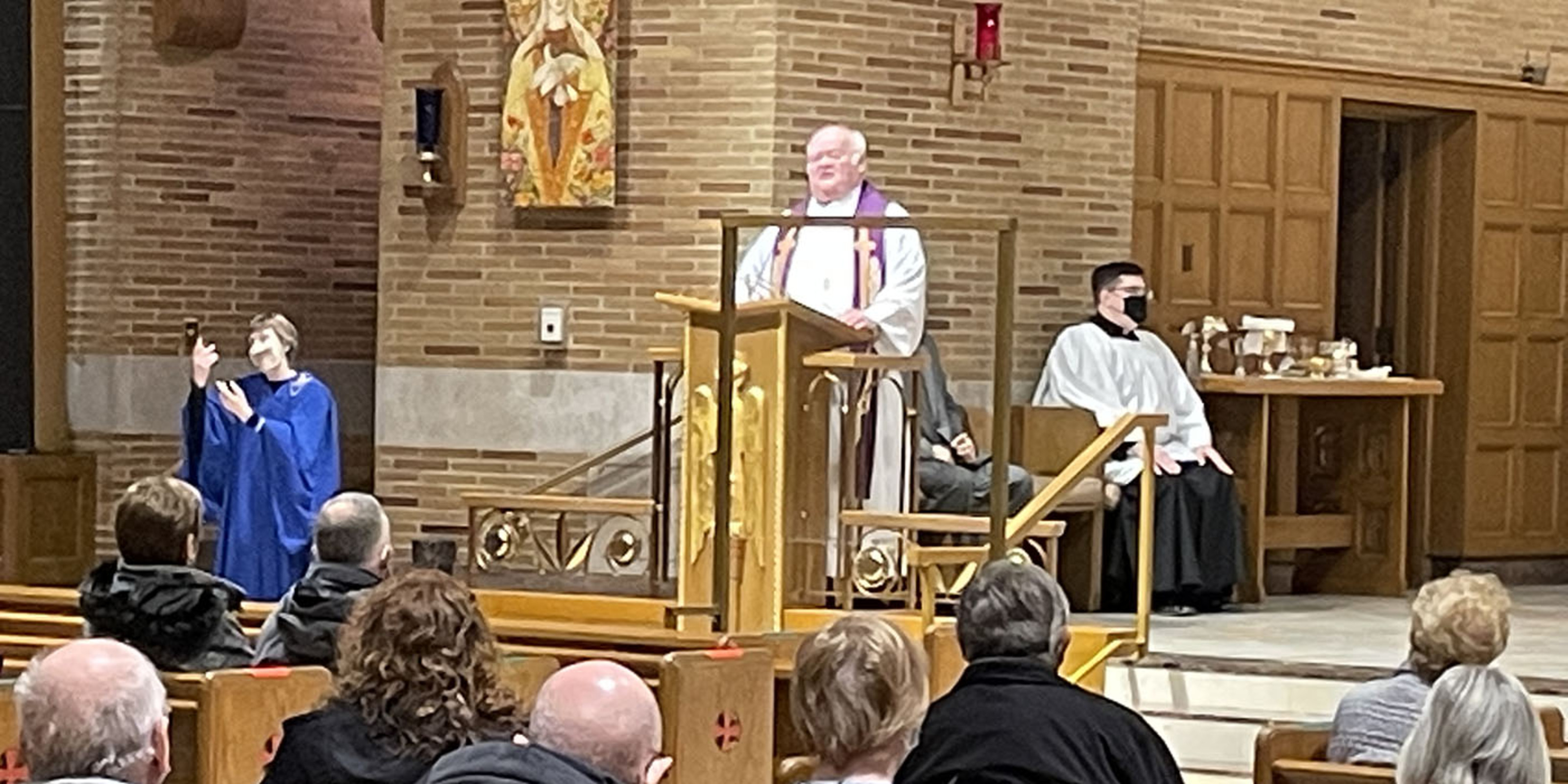 As he continues getting acquainted with his new diocese, Bishop Edward Malesic traveled to Parma on Feb. 28 to celebrate Mass at St. Charles Borromeo Parish. He was joined by Father John Carlin, the pastor, and parochial vicars Father Christopher Cox and Father Joshua Cochrac. Also assisting were Deacon Dan Gallo and three seminarians. An interpreter used American Sign Language to interpret the liturgy for the deaf. The livestreamed Mass reached an estimated 3,000-4,000 people.
