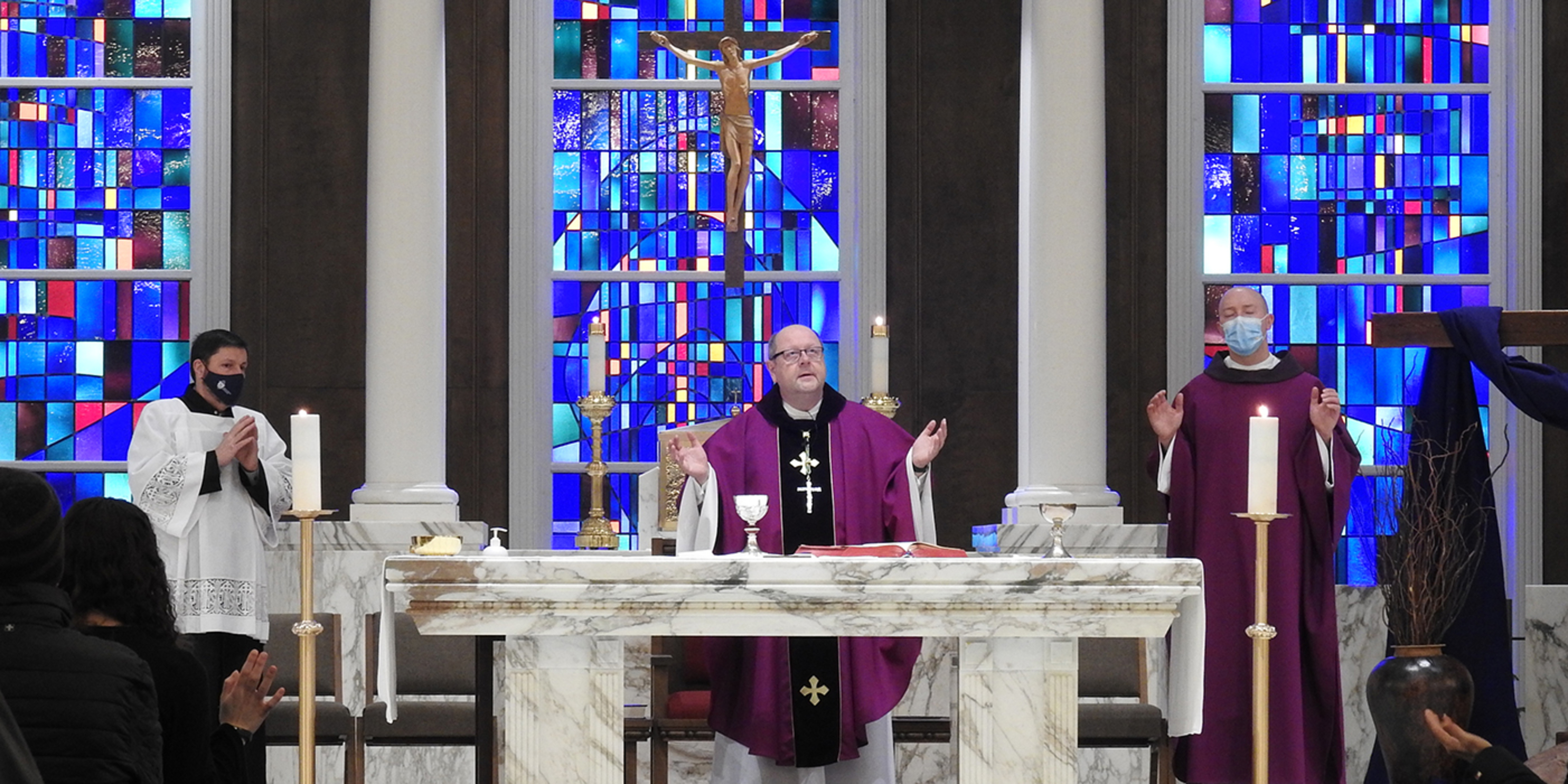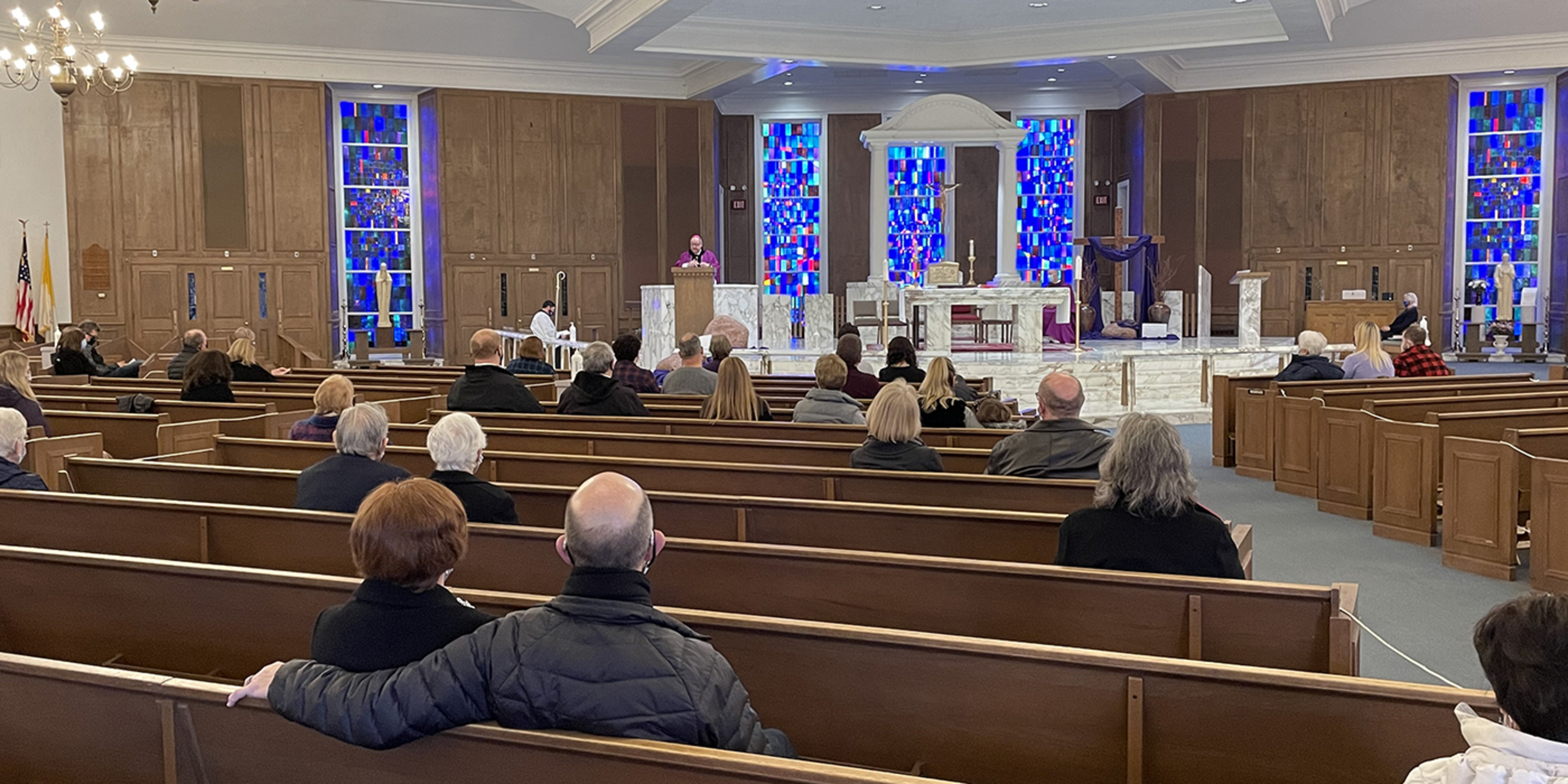 But instead of the pastor, Father Steve Flynn, or Father Peter Kovacina, the parochial vicar, processing in, they were surprised to see Bishop Edward Malesic joining Father Flynn to celebrate Mass for the Third Sunday of Lent.