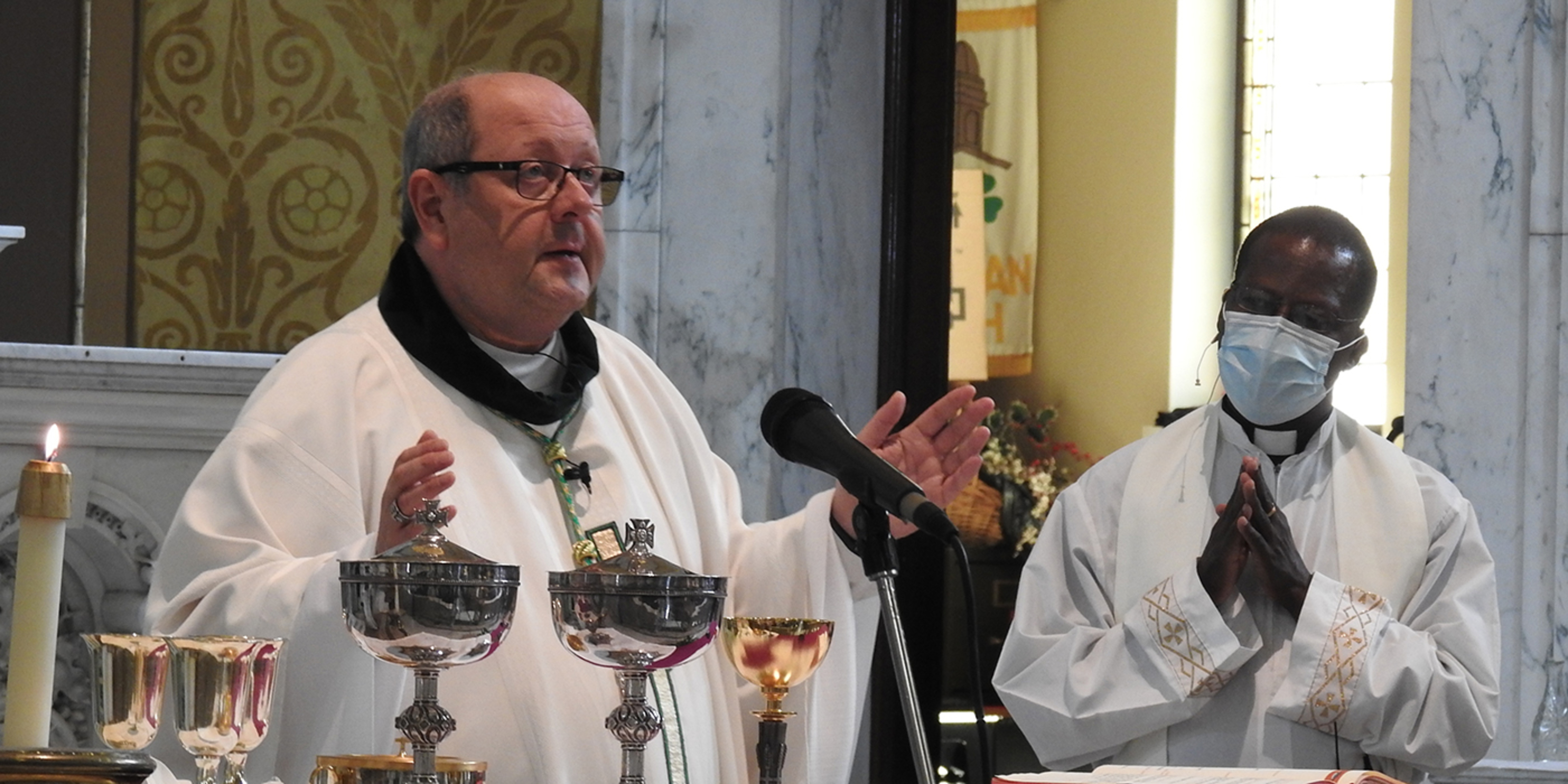 Attendance at the livestreamed Mass – which was by ticket only – was restricted to 140 people, including some of the club’s honorees and Edward Crawford, Irish ambassador to the United States. Many others watched the liturgy on St. Colman’s Facebook page and the diocesan website.