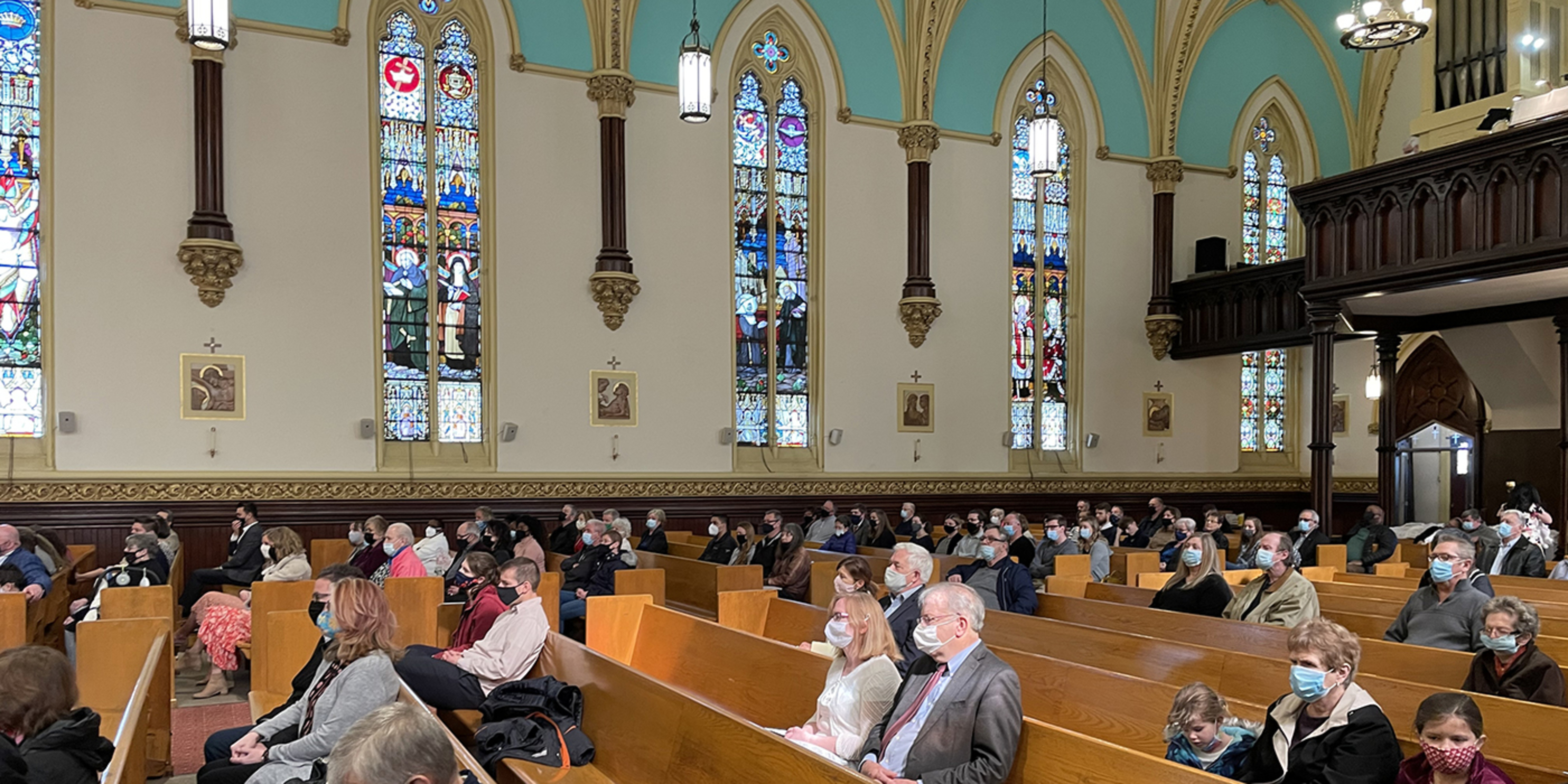 A baby who was baptized earlier that day was in the front pew with her family. Bishop Malesic promised to keep her and her family in his prayers. He also took photos with the family after Mass.
