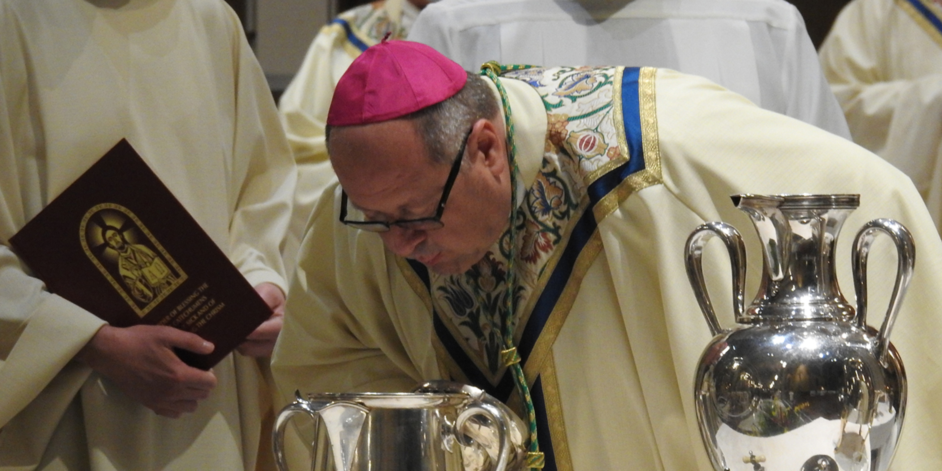 Bishop Malesic explained that three oils are blessed at the chrism Mass: