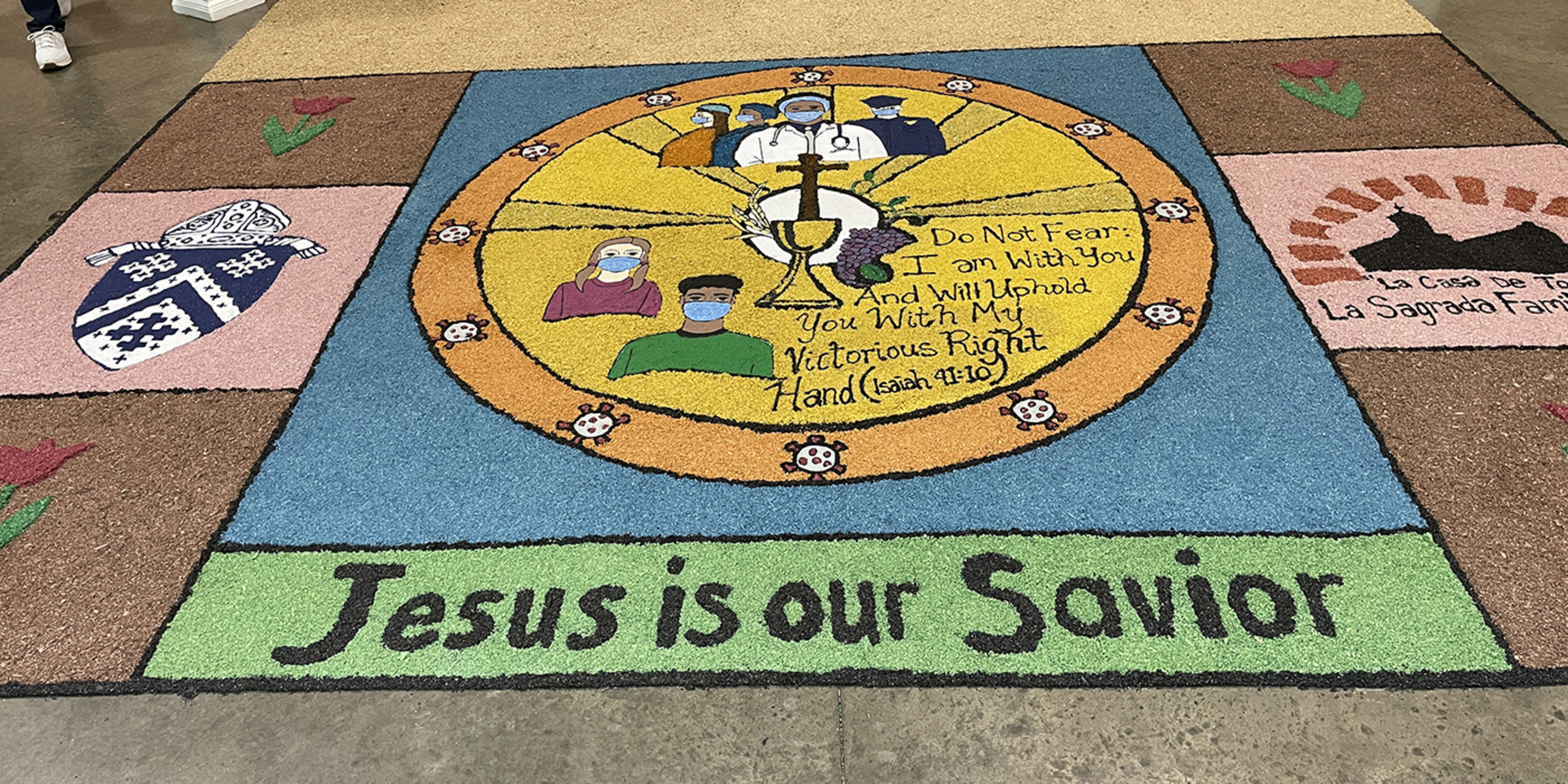 Although many Sagrada Familia parishioners are Puerto Rican, they embraced the custom. In non-pandemic years, the Carpets of Holy Week were part of the Good Friday procession that traveled between Sagrada Familia, St. Colman and St. Michael the Archangel parishes, where participants stopped to pray and reflect on Jesus’ Passion and crucifixion. The carpets would be destroyed as those in the procession trampled them on their way into or out of Sagrada Familia.