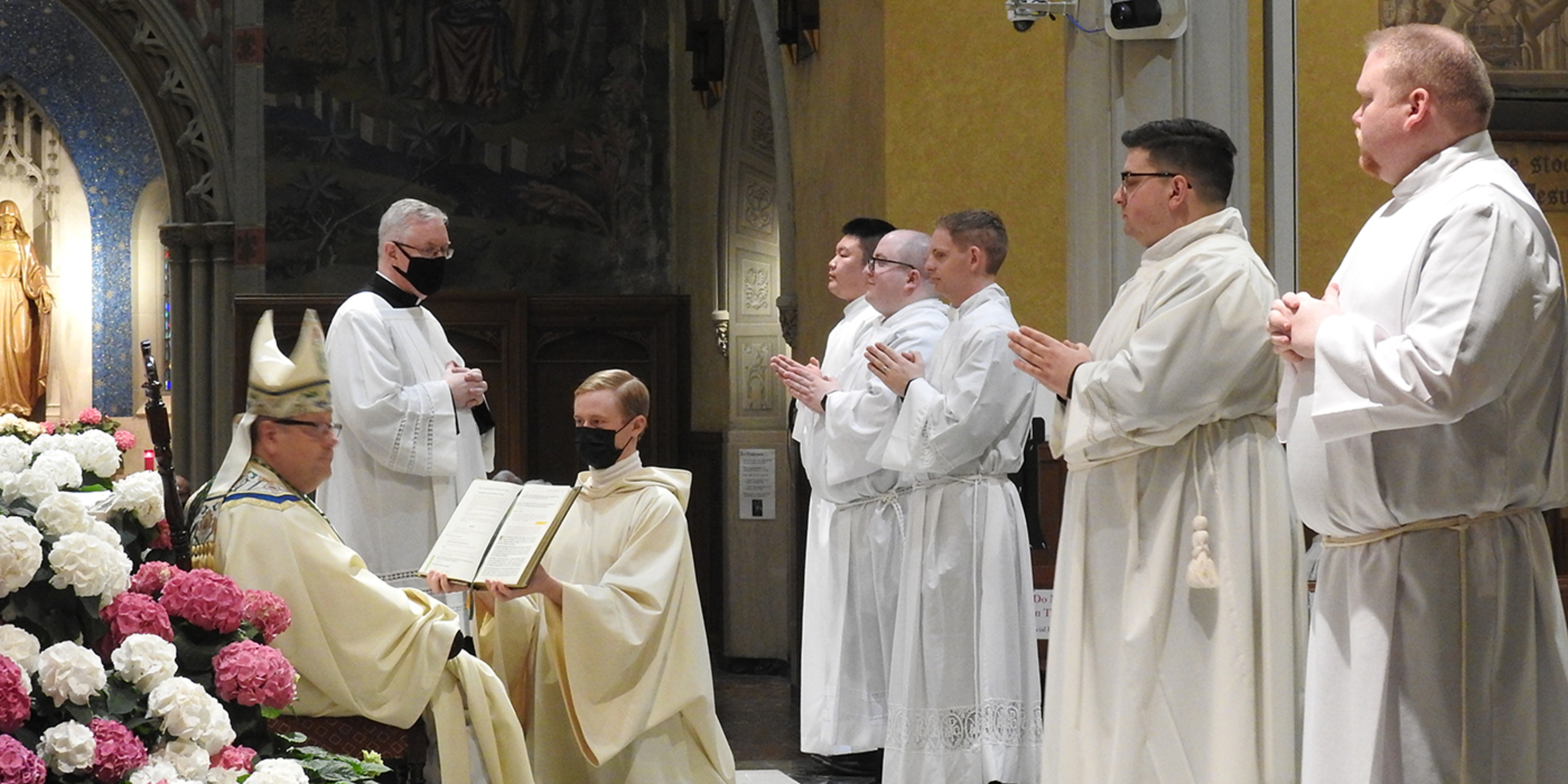 “Gentlemen, you have been feeling the tug of God’s call for a long time now. Your faculty and formators – and your bishops – tested that call,” Bishop Edward Malesic told the five Saint Mary seminarians who were ordained as transitional deacons during a Mass on April 17 in the Cathedral of St. John the Evangelist.