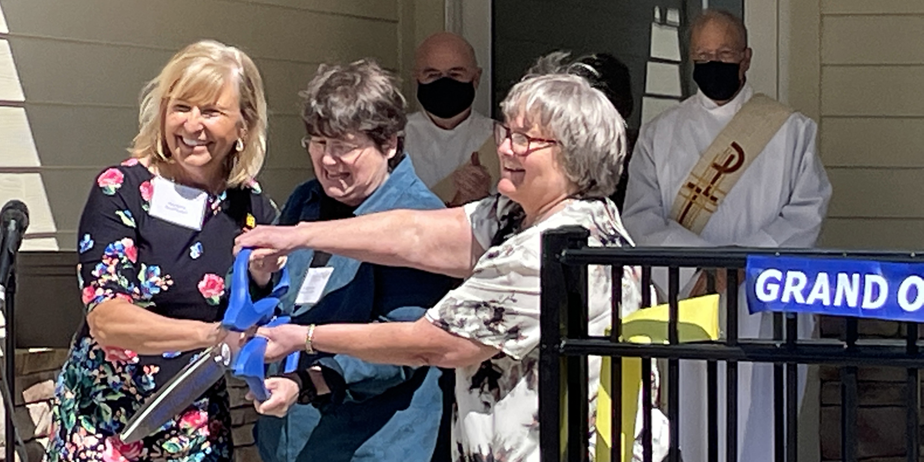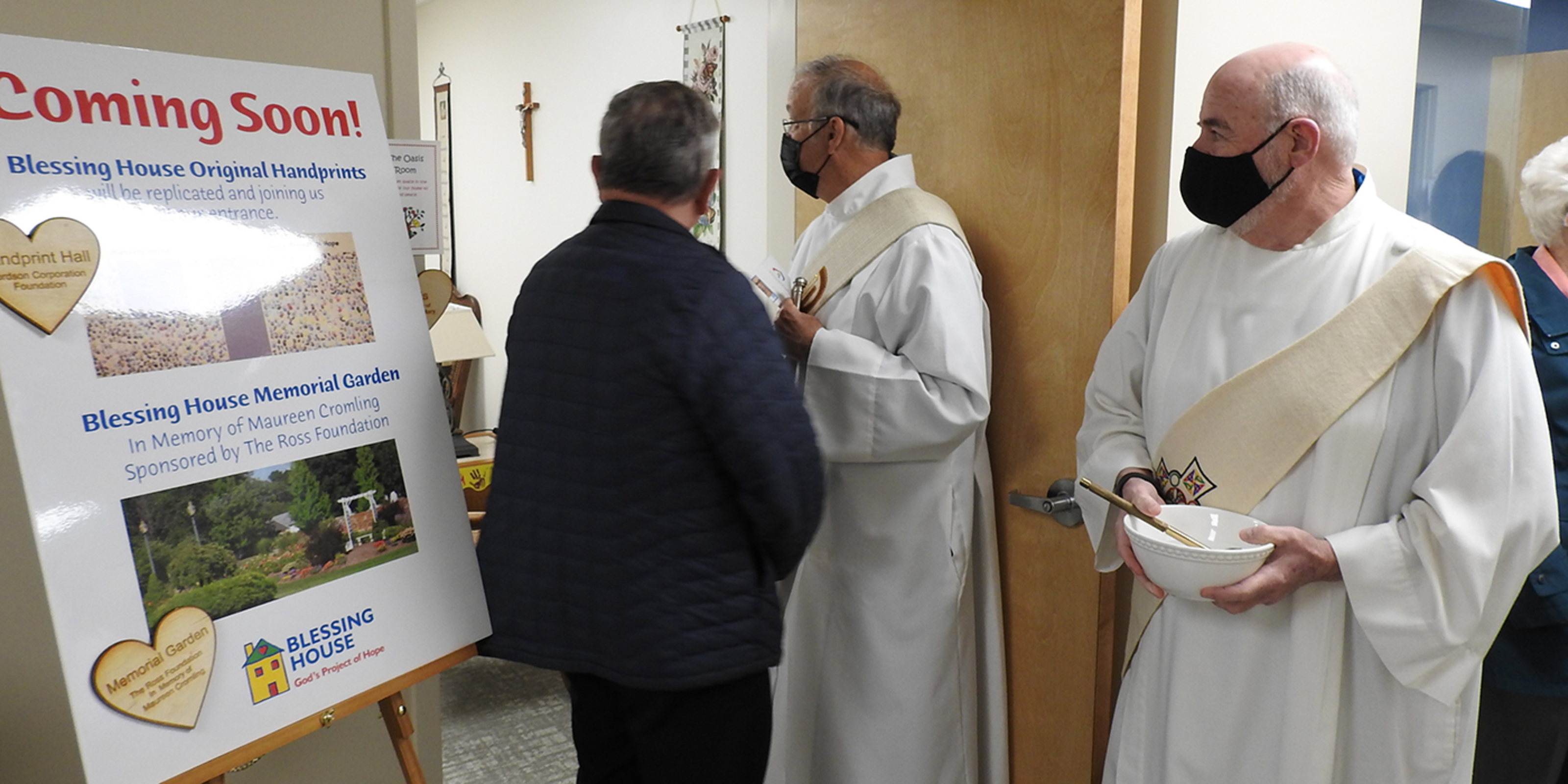 About two hours before the dedication and blessing of the new Blessing House, the skies cleared and the sun began to shine. Notre Dame Sister Mary Berigan, co-founder and executive director of Blessing House, beamed as she greeted staff, volunteers, members of the board of directors, vendors and other visitors.