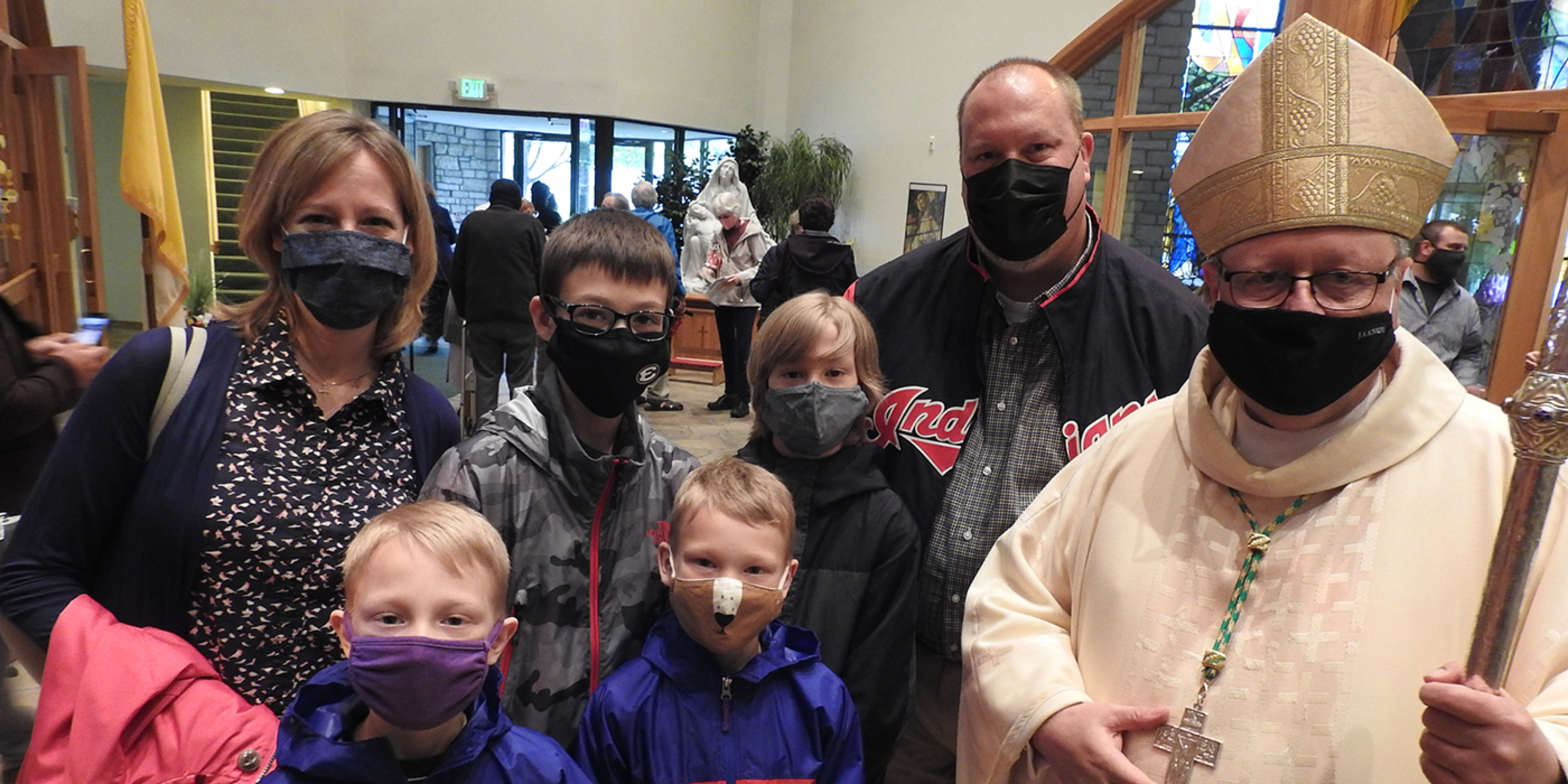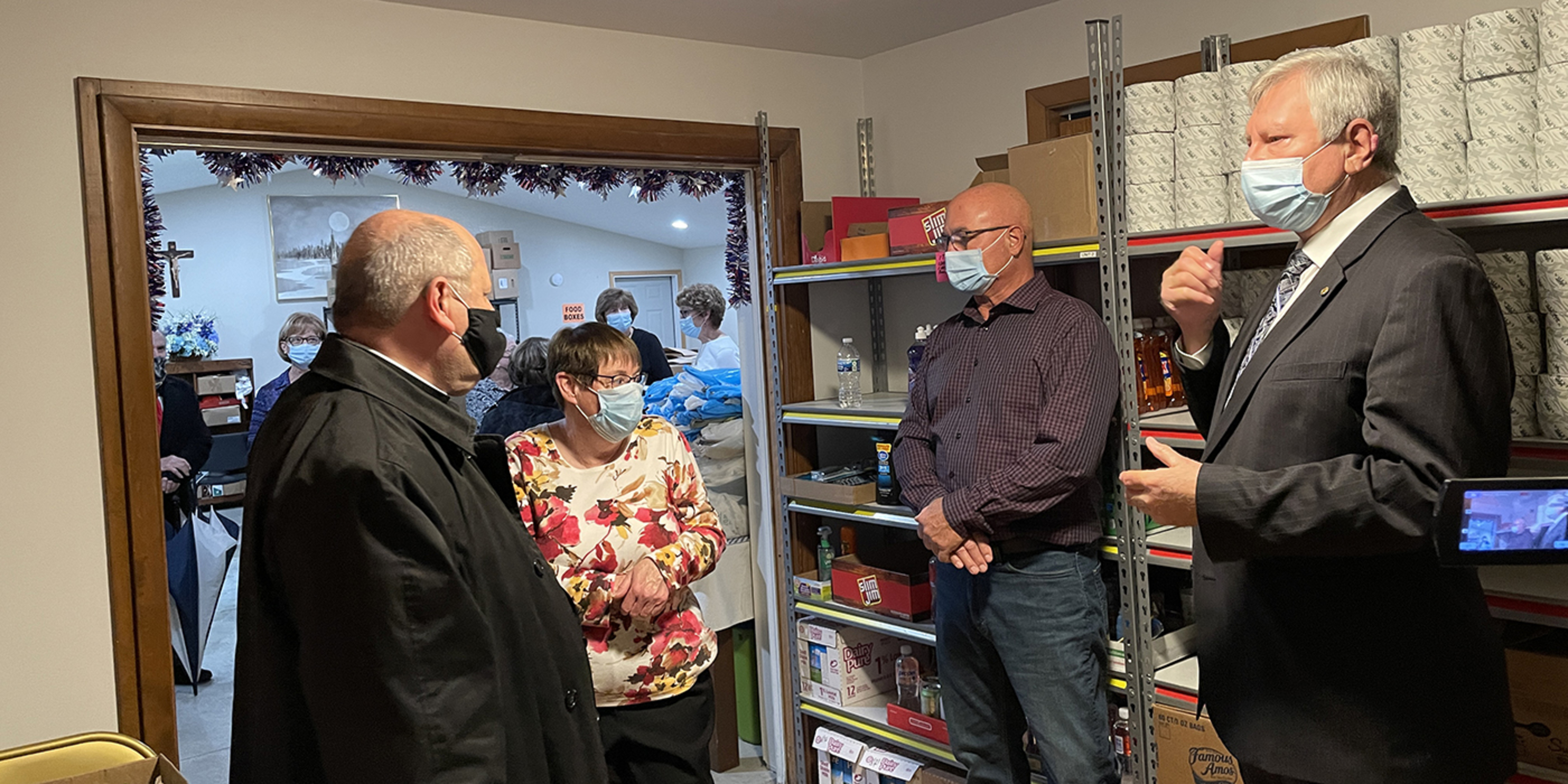 The bishop greeted parishioners and posed for photos after Mass before heading over to see the work of the parish’s Helping Hands Food Pantry, which he also blessed.