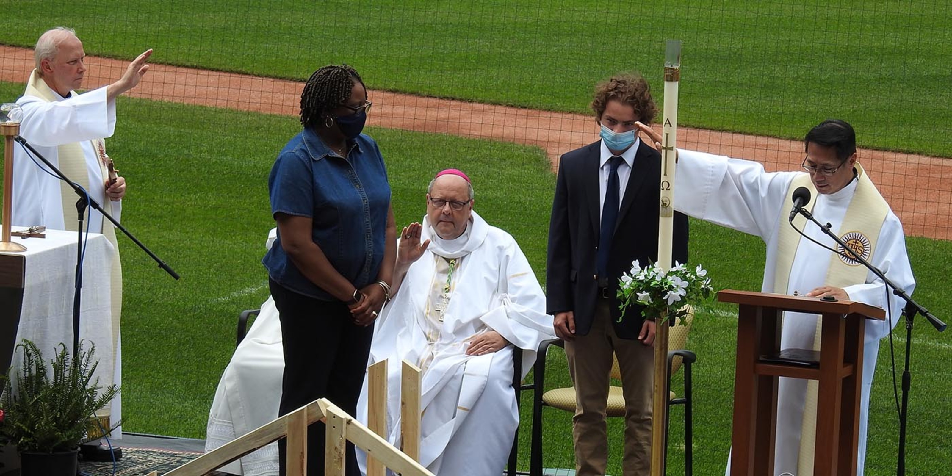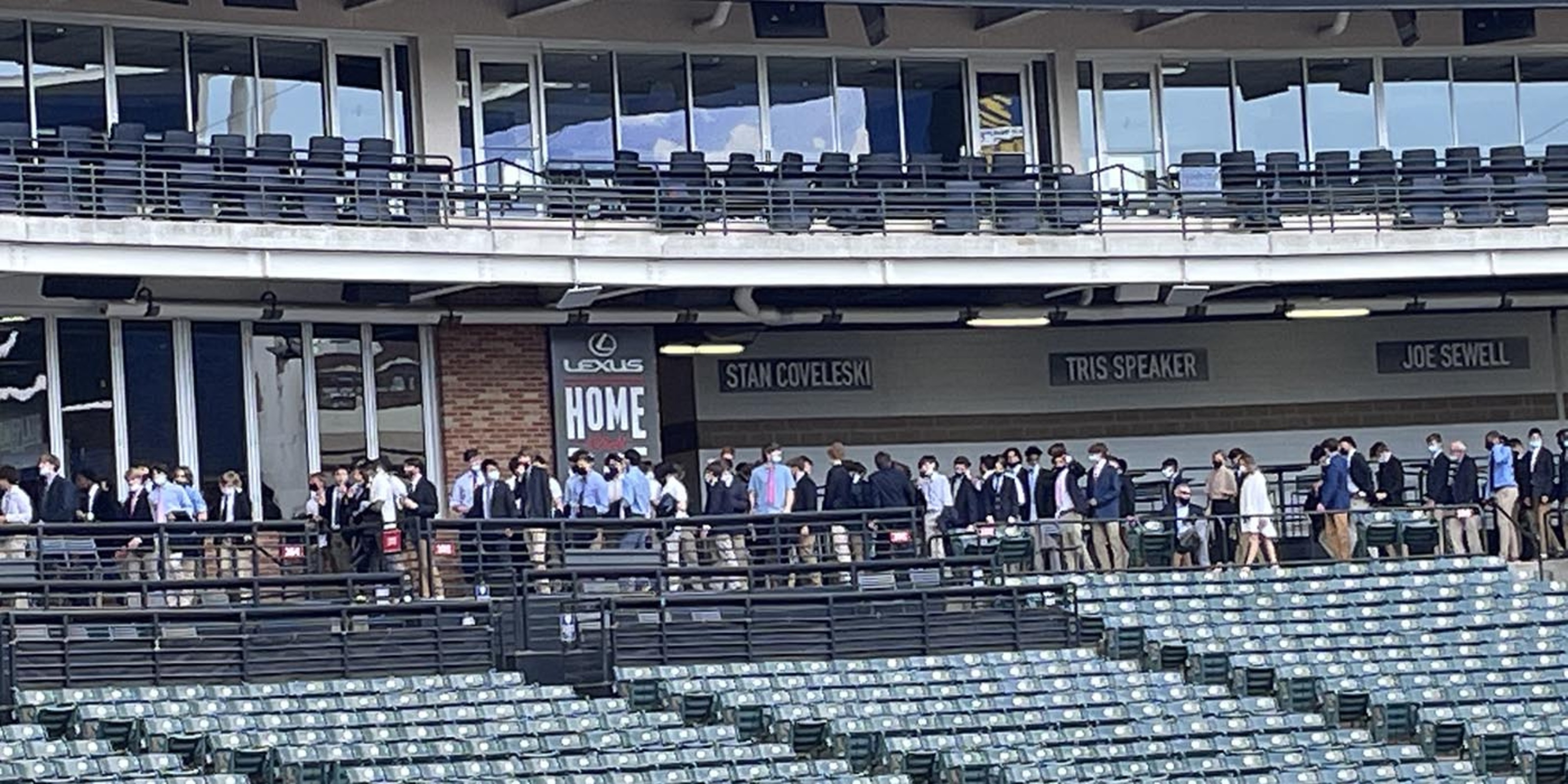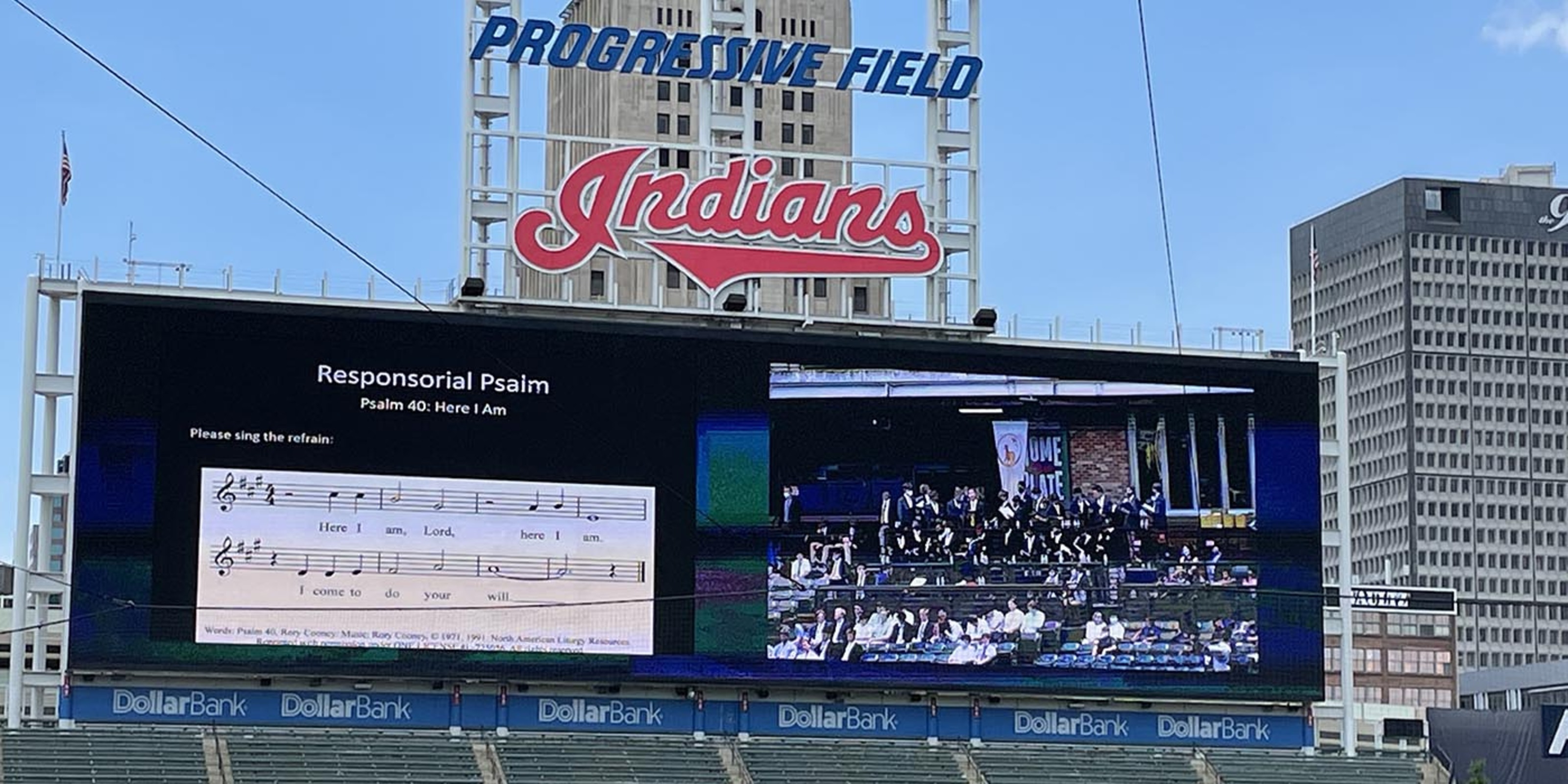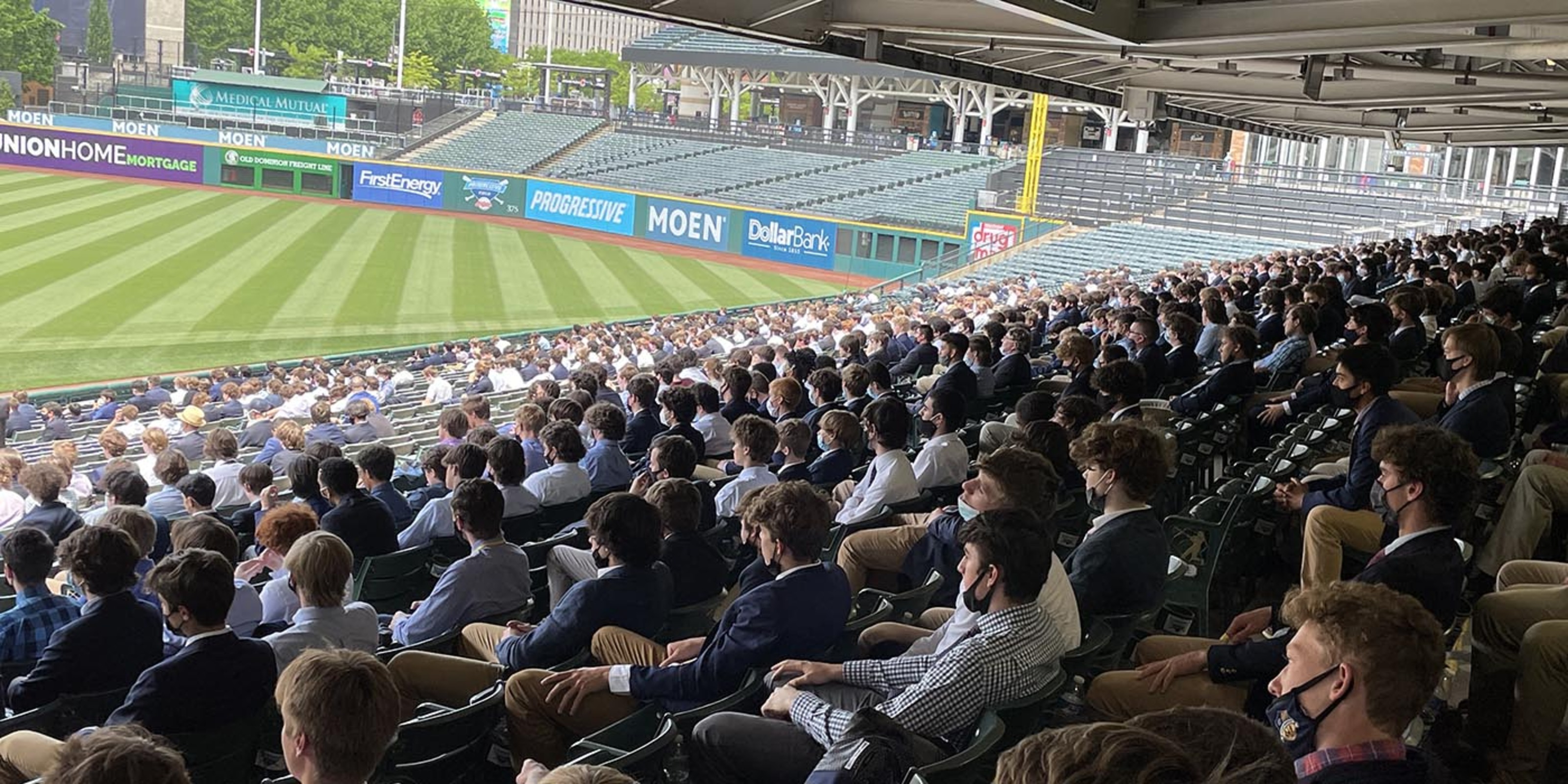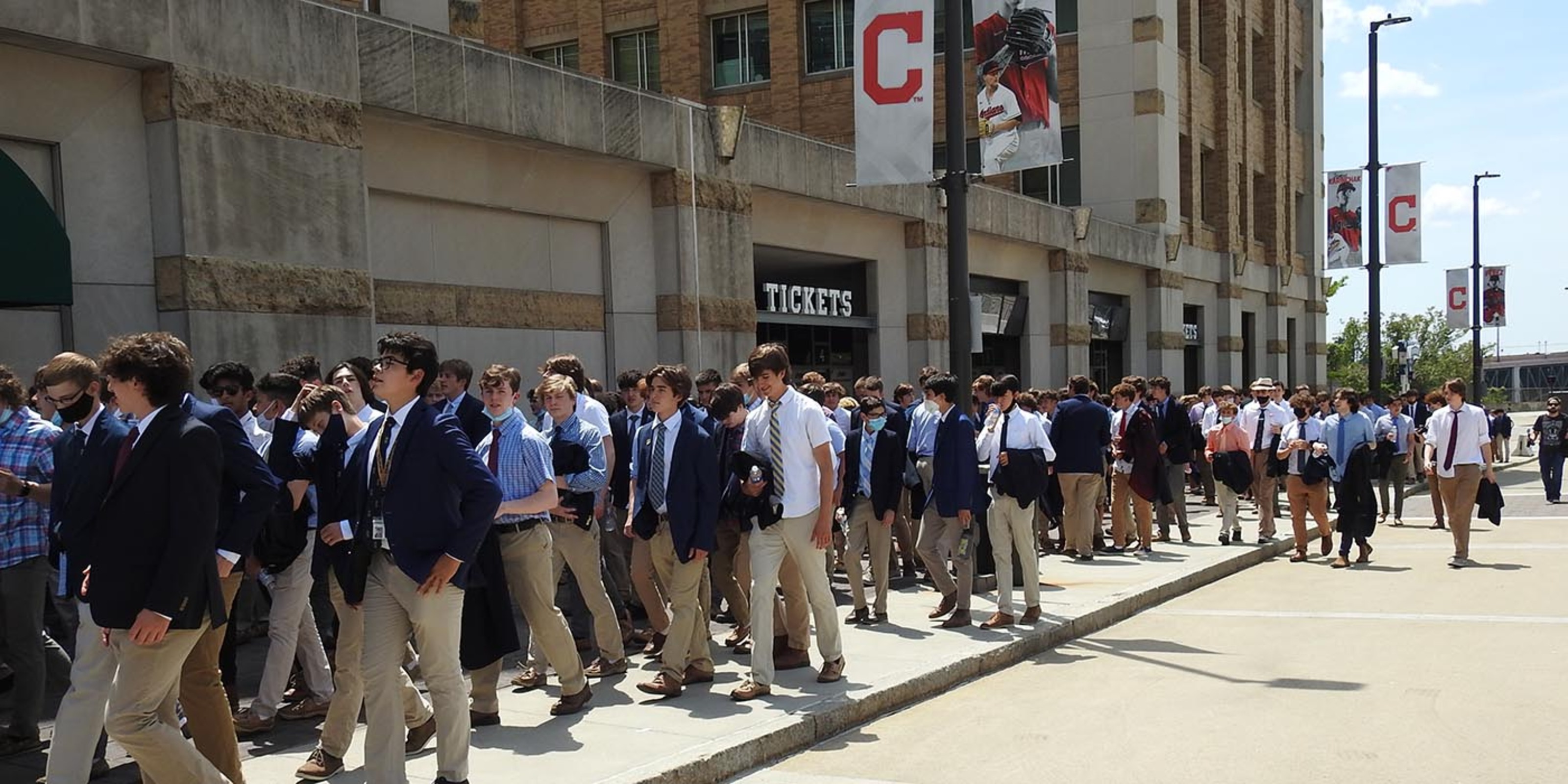 The 1,500 students, 110 faculty members and 100 staff members traveled to Progressive Field where Bishop Edward Malesic, at the invitation of Father Ray Guiao, SJ, Saint Ignatius president, presided at an outdoor liturgy coordinated by Augie Pacetti, director of campus ministry. Most walked from the school and crossed the Hope Memorial Bridge on their way to the ballpark.