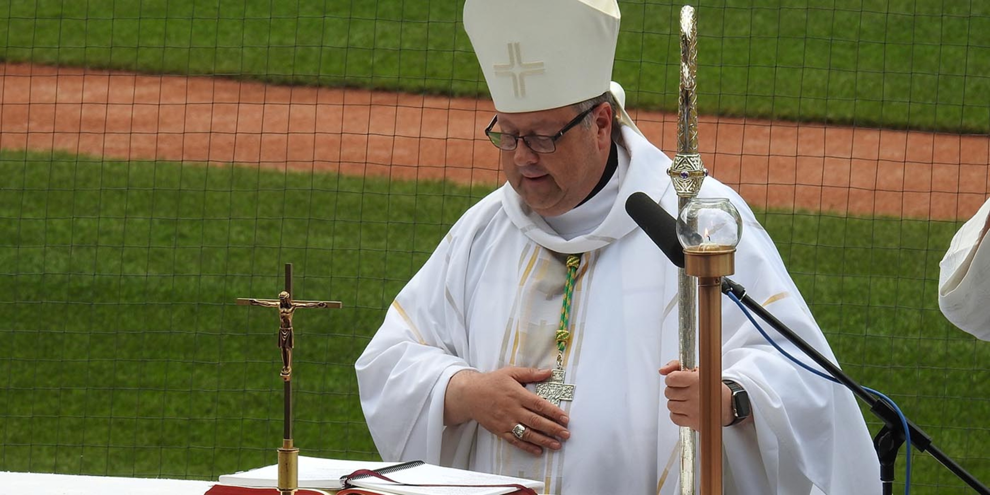 He encouraged them to be prepared like the baseball players who come to Progressive Field, ready to do their best. “Like a soul that wants to fly all the way to heaven, to be a saint. That is the direction Jesus has set for you. Aim high and in the direction of God and then give it your all. And when someone throws you a curve ball, it can still turn into a home run,” he said. “Ask God how to respond to those unexpected and unwanted events, those curve balls that come your way. He will show you how to respond. God is a good coach. He gave us Jesus on the cross as our best example.”
