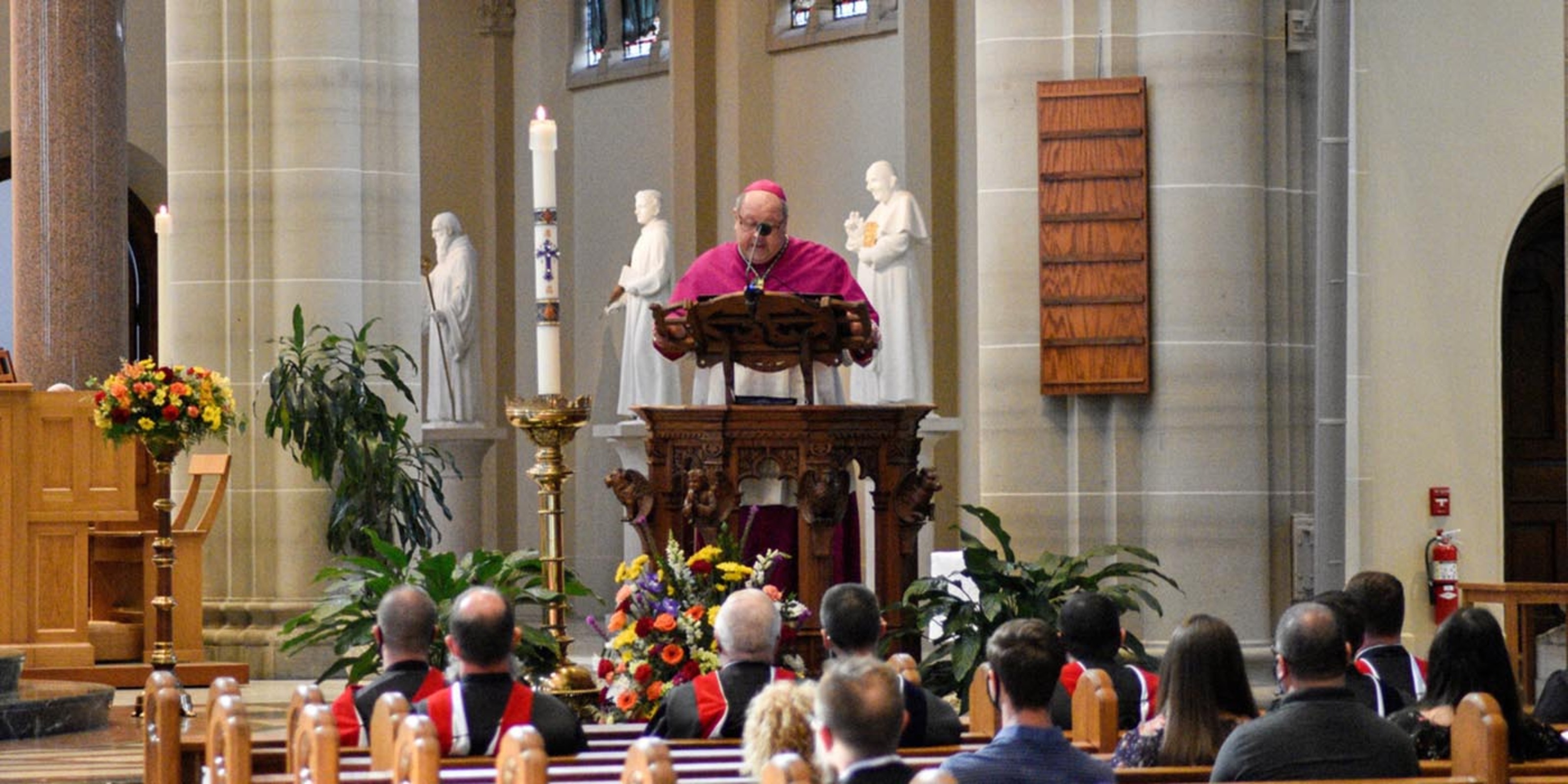 Bishop Malesic reflected on how the pandemic impacted the past year, noting that he hoped “God used the cross of the pandemic to bring about some greater good for you. Perhaps it brought you closer to each other as a community. It certainly taught all of us the need to row in the boat together, as Pope Francis reminded us last year. I hope the pandemic taught us the value of life and the need to protect it, sometimes at great cost. I hope it helped us to slow down a bit and appreciate the good things that are all around us,” he said. “I hope we come out of this pandemic better than when we went into it. In whatever way this pandemic affected you, you made it through to today,” he told the graduates.