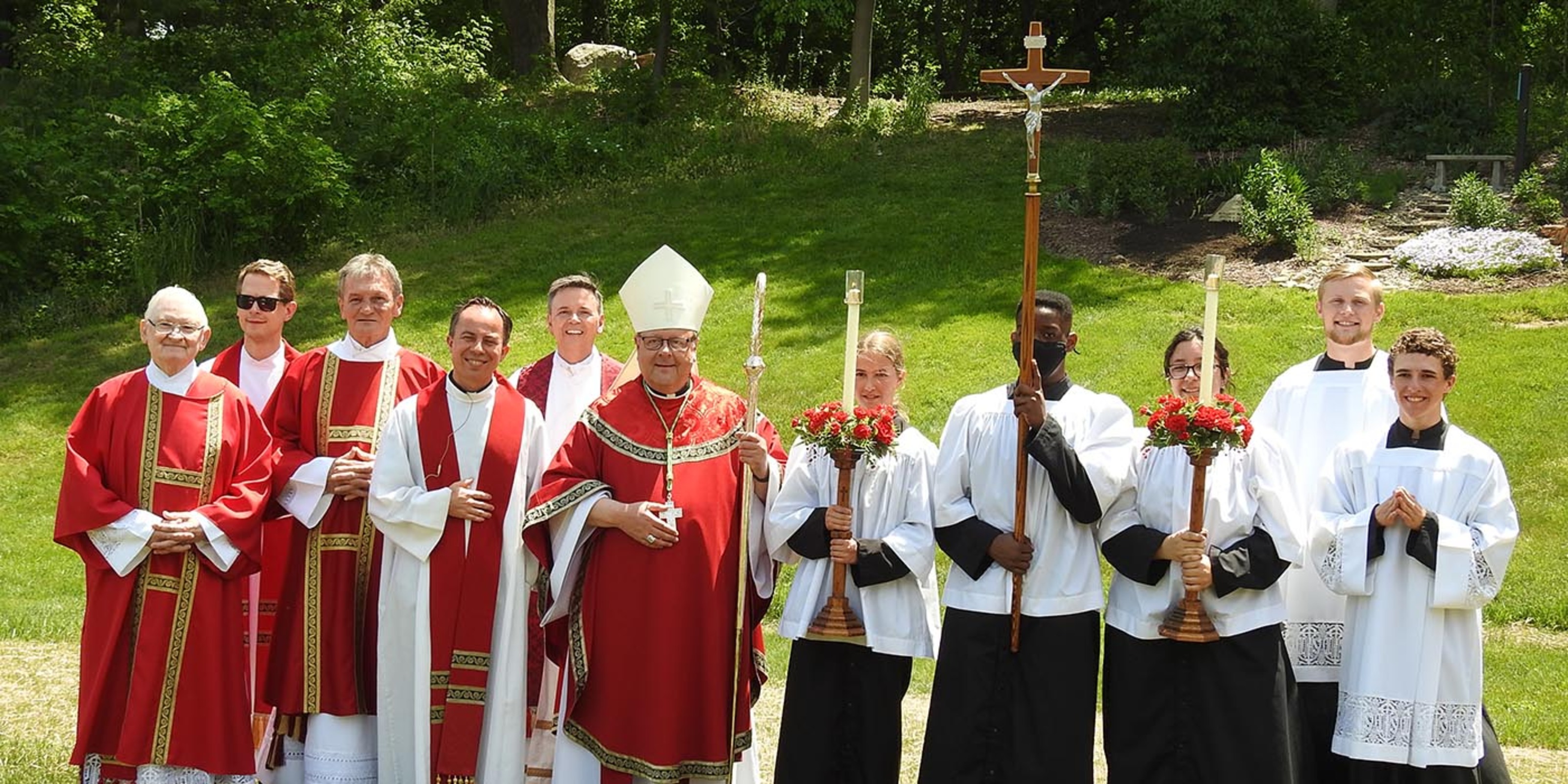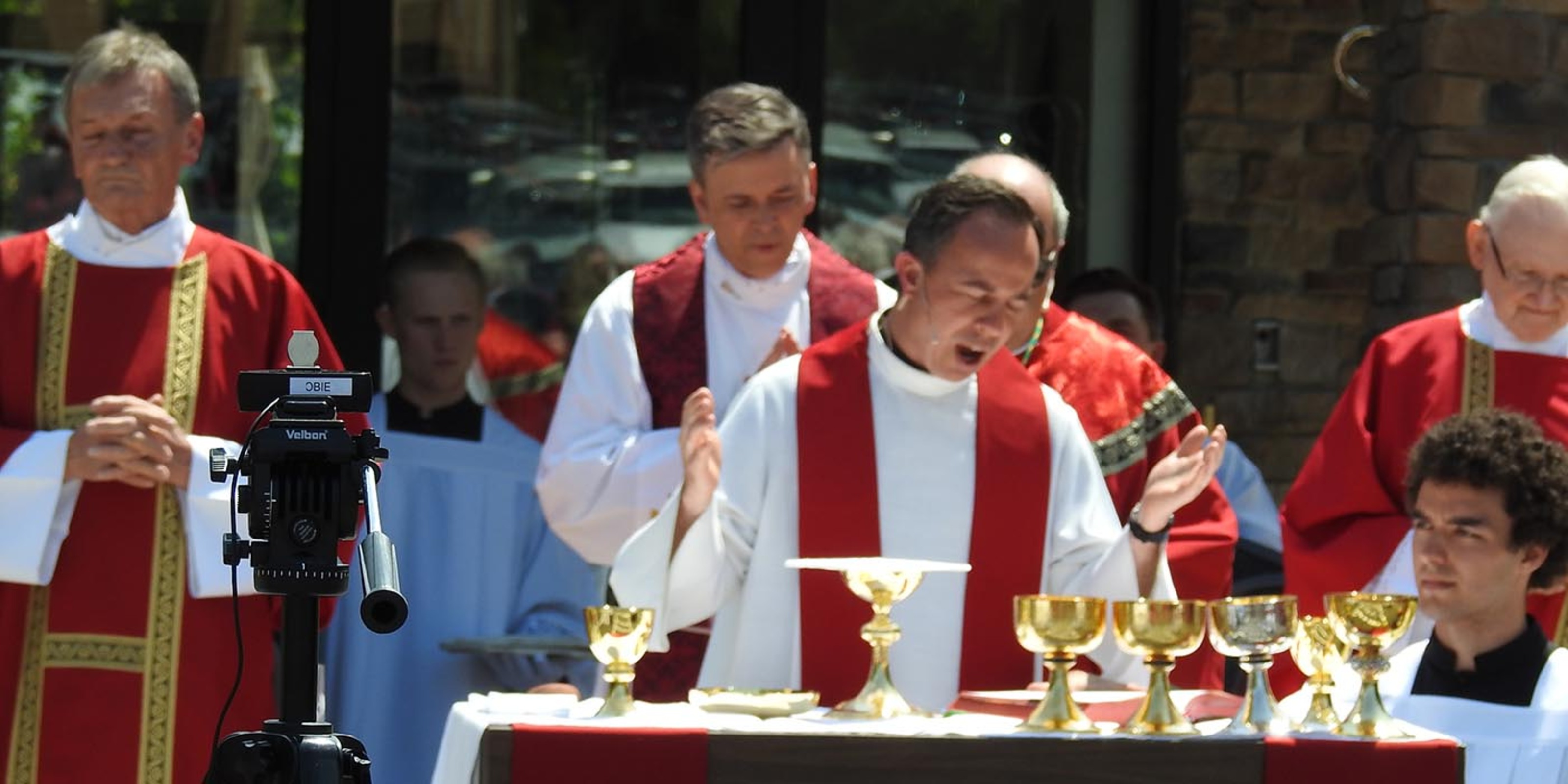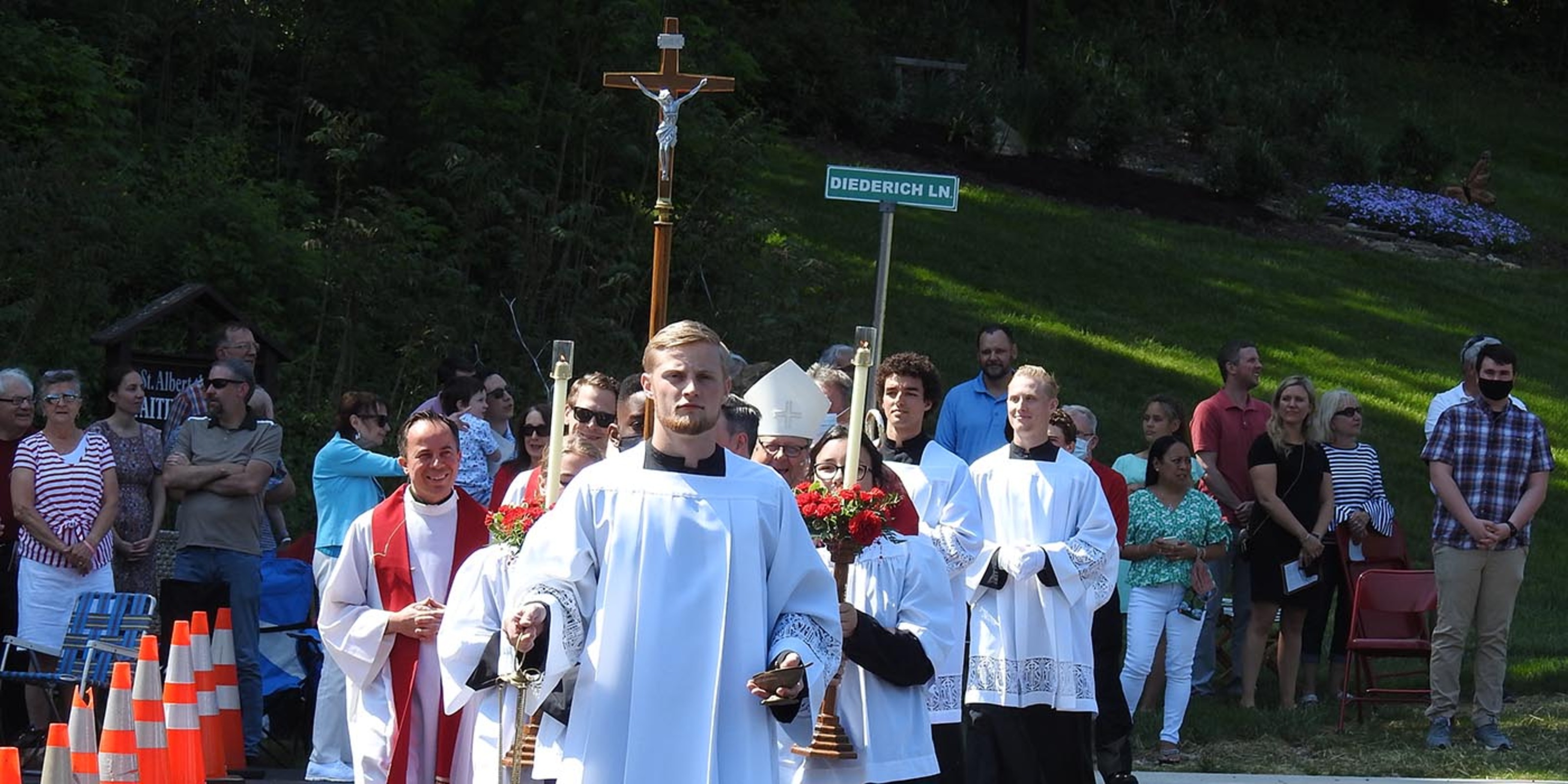 The outdoor Mass also welcomed Father Bline back to his longtime parish home, celebrated the 23rd anniversary of Deacon Butz’s ordination and offered thanks for the vocations from the parish.