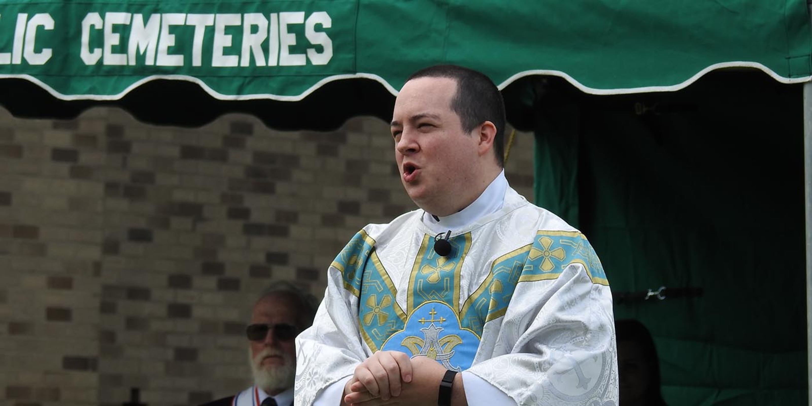 At Holy Cross Cemetery in Brook Park, Father Christopher Cox, parochial vicar at St. Charles Borromeo Parish in nearby Parma, was the celebrant. Mercedarian friar Father Daniel Bowen concelebrated. The Knights of Columbus assisted at several of the Masses, including at Holy Cross.