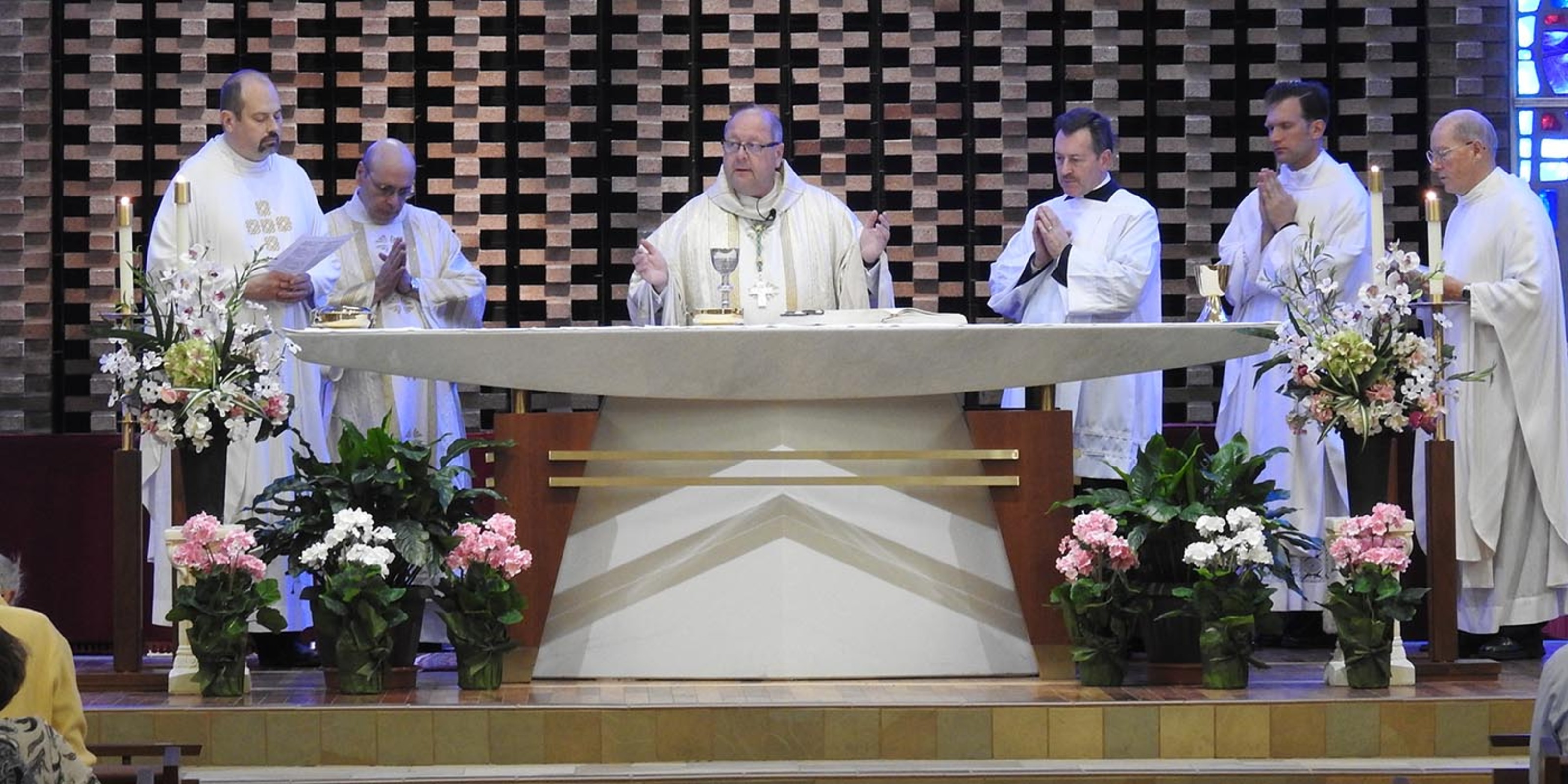 The parish’s 75th anniversary celebration begin on June 6, the feast of Corpus Christi, with a Mass celebrated by Bishop Edward Malesic. Father Joe Mamich, pastor, Father Kevin Klonowski, parochial vicar, and Father Robert Sanson, pastor emeritus, concelebrated.