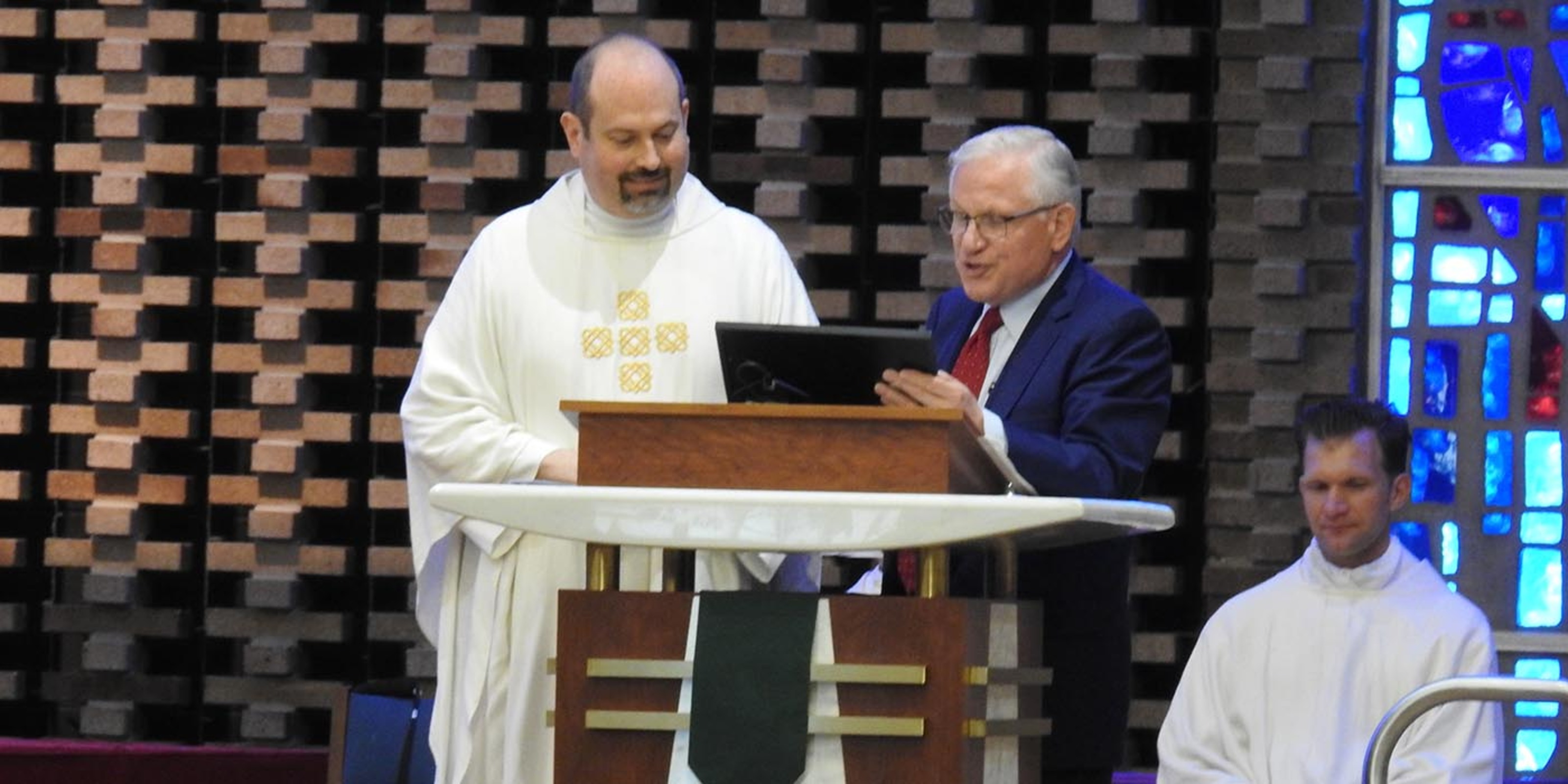 Strongsville Mayor Tom Perciak, a parishioner at nearby St. John Neumann, attended the Mass and presented Father Mamich with a proclamation from the city recognizing the contributions St. Joseph Parish had made to the city and offering congratulations on the 75th anniversary.