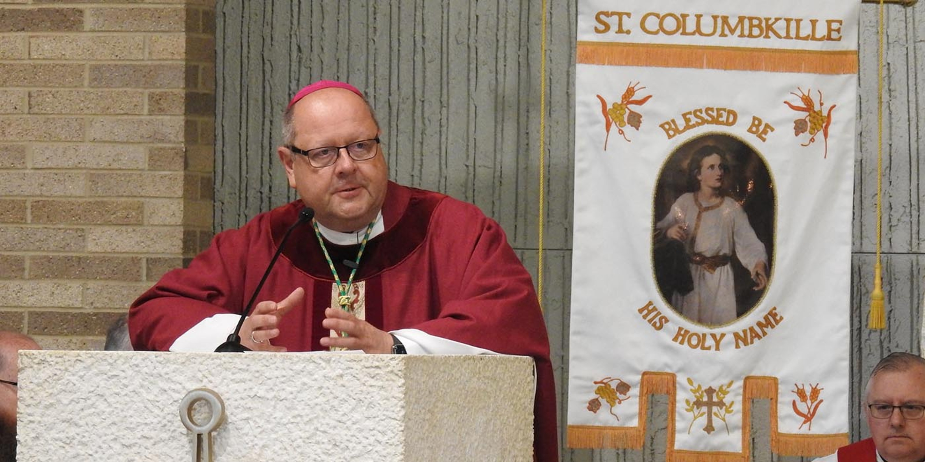 “I’m happy to be here to celebrate this holy sacrifice of the Mass with all of you,” the bishop said. “Obviously, the mission of the Holy Name Society is very important to me.” He also thanked Father Anthony Suso, St. Columbkille pastor, for hosting the event, and priests from St. Columbkille and other parishes for concelebrating.